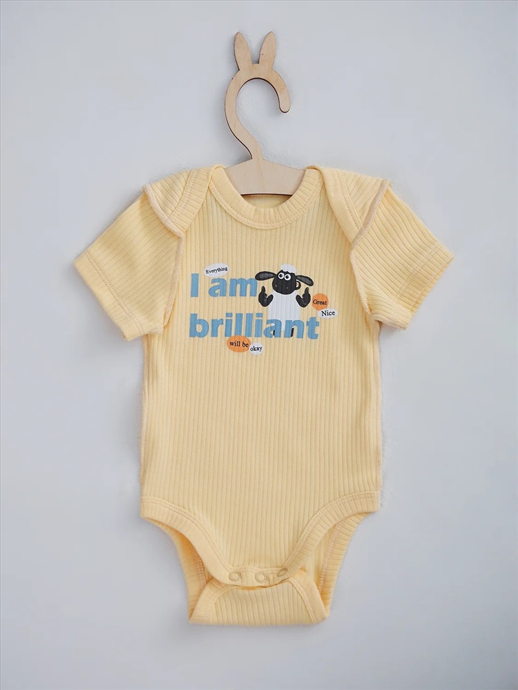 Тип рукава: короткие Боди 1-3 месяцев (рост 56-62),выполнено из интерлока. Швы на лицевой стороне изделия. Спинка и перед цельнокроенные. Спинка с переходящей кокеткой и цельнокроенной ластовицей. Горловина круглая, окантована бейкой из основног полотна. Припуски верхних и нижних срезов переда и спинки окантованы бейкой из основго полотна. Рукава короткие, втачные, одношовные. Нижние края изделия по середине фиксируются на книпперы- 3 шт