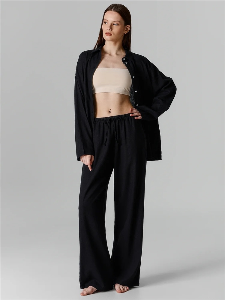 Рост: 170 Женские домашние брюки свободного силуэта — это сочетание удобства и естественного стиля для уютных домашних образов. Они выполнены из натурального льна и вискозы. такое сочетание материалов подарит легкость, мягкость и воздухопроницаемость, идеально подходя для домашнего гардероба. Свободный крой позволяет чувствовать себя непринужденно, обеспечивая максимальную свободу движений. Эластичный пояс с кулиской добавляет комфортную посадку и возможность регулировки, а боковые карманы делают модель практичной и функциональной. Низ изделия обработан швом вподгибку, что обеспечивает аккуратность и долговечность. Для создания стильного домашнего комплекта вы можете дополнить брюки рубашкой из этой же коллекции. Такой комплект обеспечит уют и гармоничный образ для комфортного отдыха!