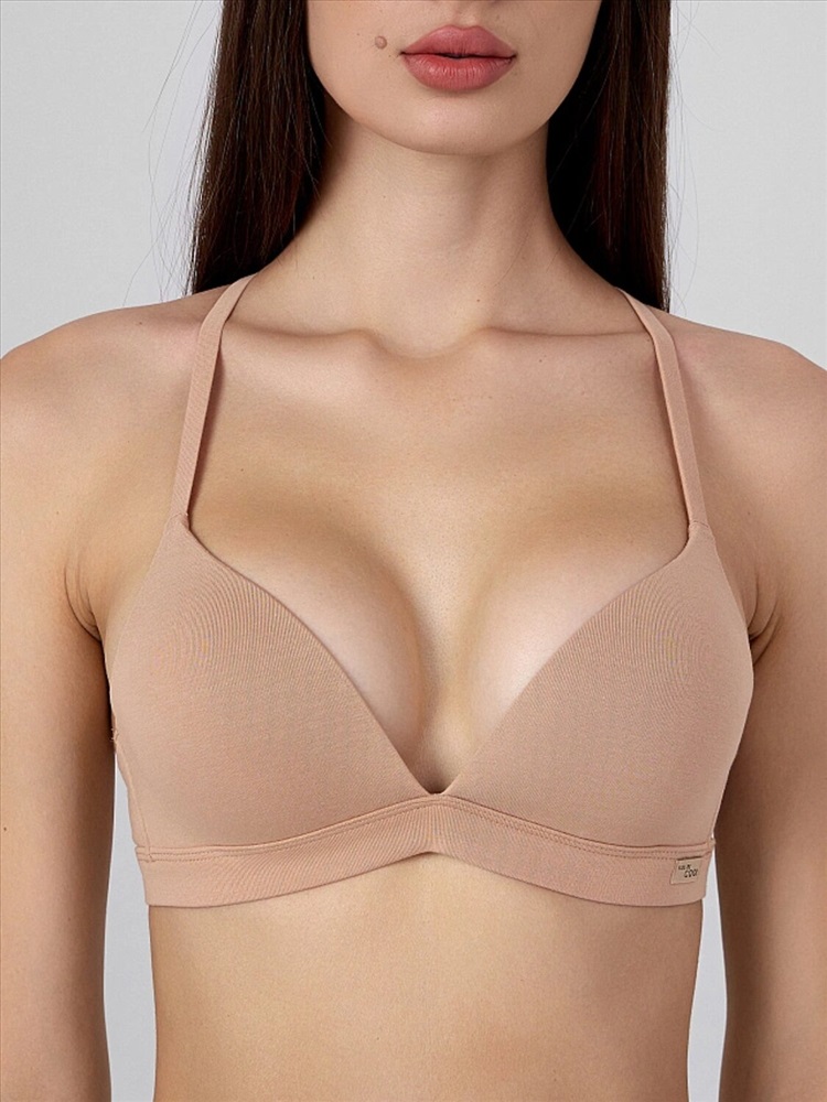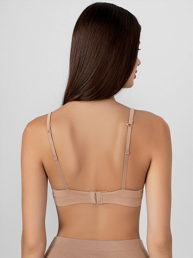 Вид бюстгальтера: формованная чашка без пуш-ап Женский бюстгальтер из трикотажной кулирки сочетает комфорт и надежную поддержку без каркасов. Твердые формованные чашки обеспечивают естественную посадку и удобство, а боковые пластины помогают сохранить форму, создавая красивый силуэт. Регулируемые бретели позволяют легко адаптировать изделие под индивидуальные предпочтения, обеспечивая максимальный комфорт при носке. Двойная застежка на крючки-петли гарантирует надежную фиксацию. Дополните этот бюстгальтер подходящими трусиками, чтобы создать гармоничный комплект, идеально подходящий как для повседневной носки, так и для особых случаев.