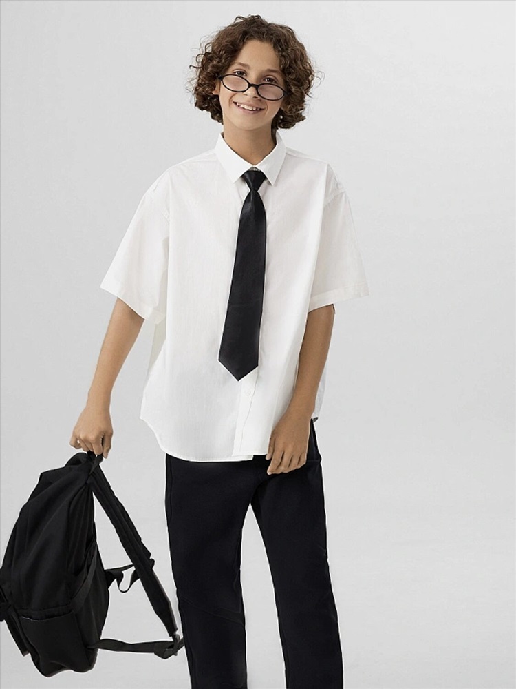 Сезонность СТАРАЯ: Всесезонное Комплект для мальчиков рубашка и галстук — это готовое стильное решение, которое избавляет от необходимости подбирать элементы образа отдельно. Рубашка из мягкого стопроцентного хлопка обеспечивает комфорт и свободу движений, а классический воротник и короткие рукава делают её универсальной для школы и праздников. Галстук идеально сочетается с рубашкой по цвету и фактуре, не мнётся и сохраняет безупречный вид весь день.