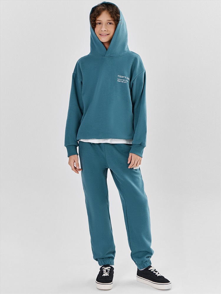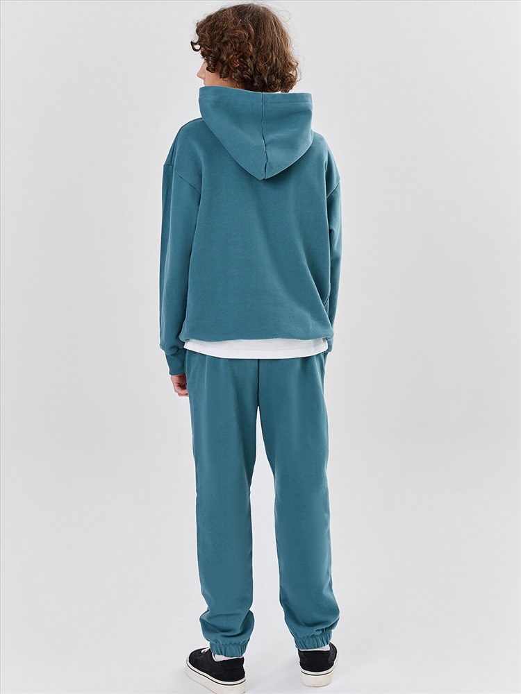 Тип карманов: в шве Комплект состоит из брюк и анорака. Анорак оверсайз с капюшоном. Линия плеча спущена. Рукава длинные, втачные. Горловина круглой формы. Капюшон на подкладке из основного полотна. В боковых швах полочки и спинки декоративные вставки из основного полотна. По низу изделия пояс из рибаны. По низу рукавов манжеты из рибаны. Брюки прямого силуэта. Посадка средняя. Цельнокроеный пояс с эластичной тесьмой и шнуром внутри. Боковые швы перенесены вперед. В боковых швах обработаны карманы. По низу брюк застрочена внутрь эластичная тесьма.