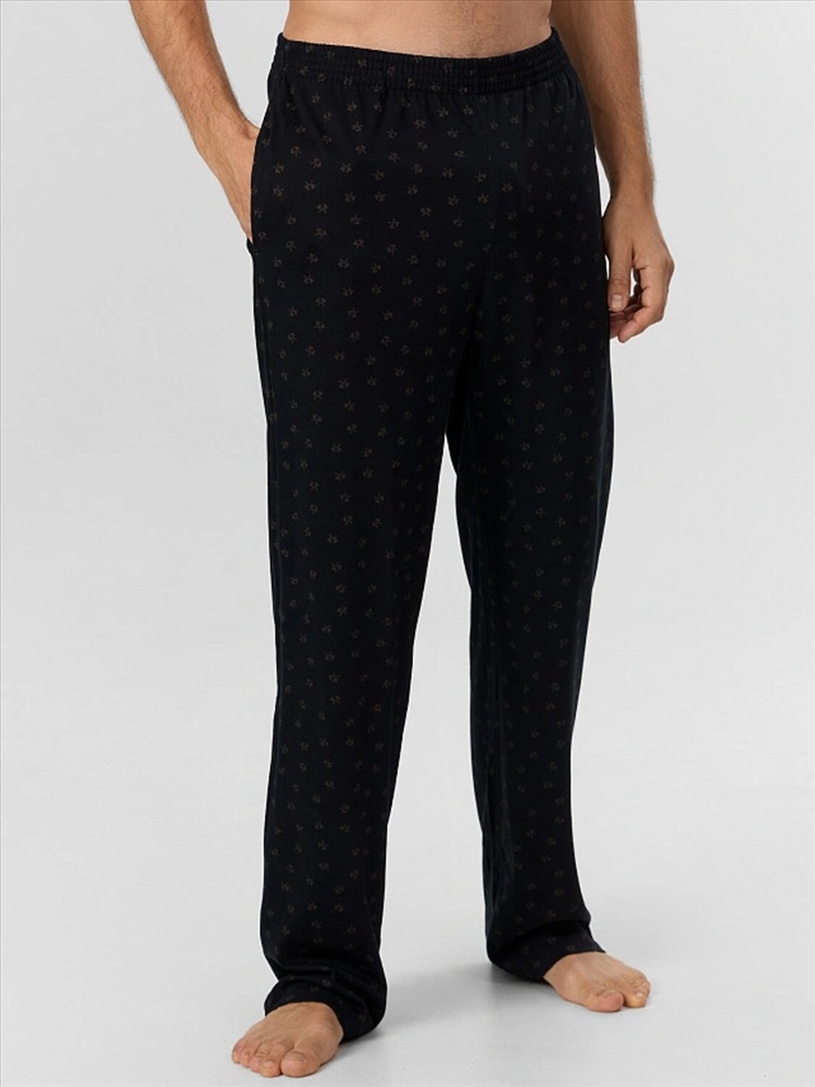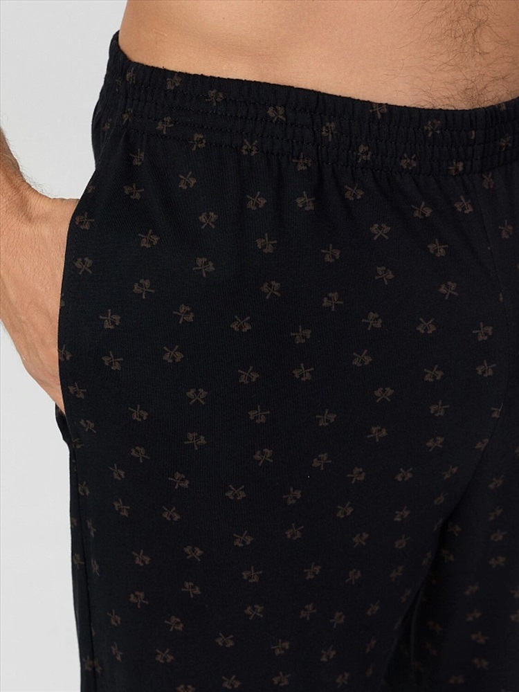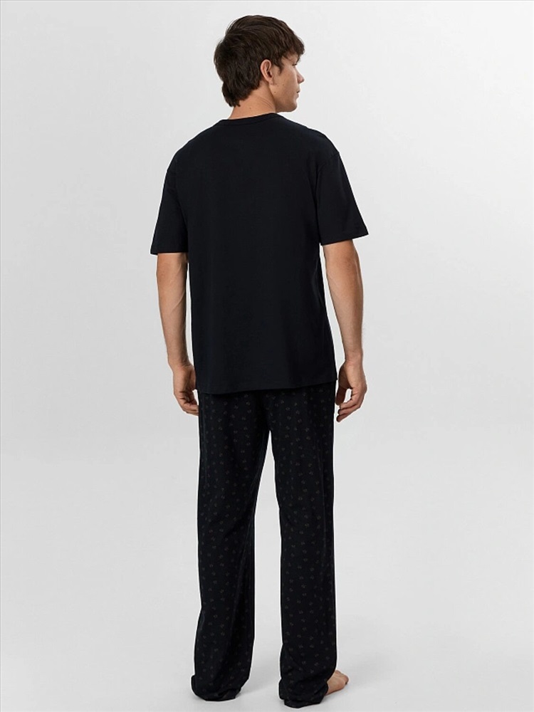 Особенности модели: нет Комплект мужской домашний черный — это уютный набор для отдыха, созданный из мягкой трикотажной кулирки. Футболка свободного силуэта с круглой горловиной и удлиненными рукавами до локтя обеспечивает полную свободу движений. Спущенное плечо и аккуратная обработка швов исключают дискомфорт.