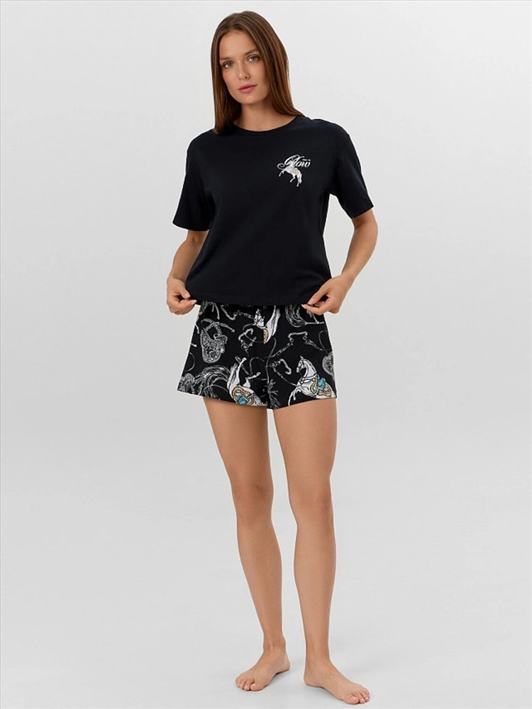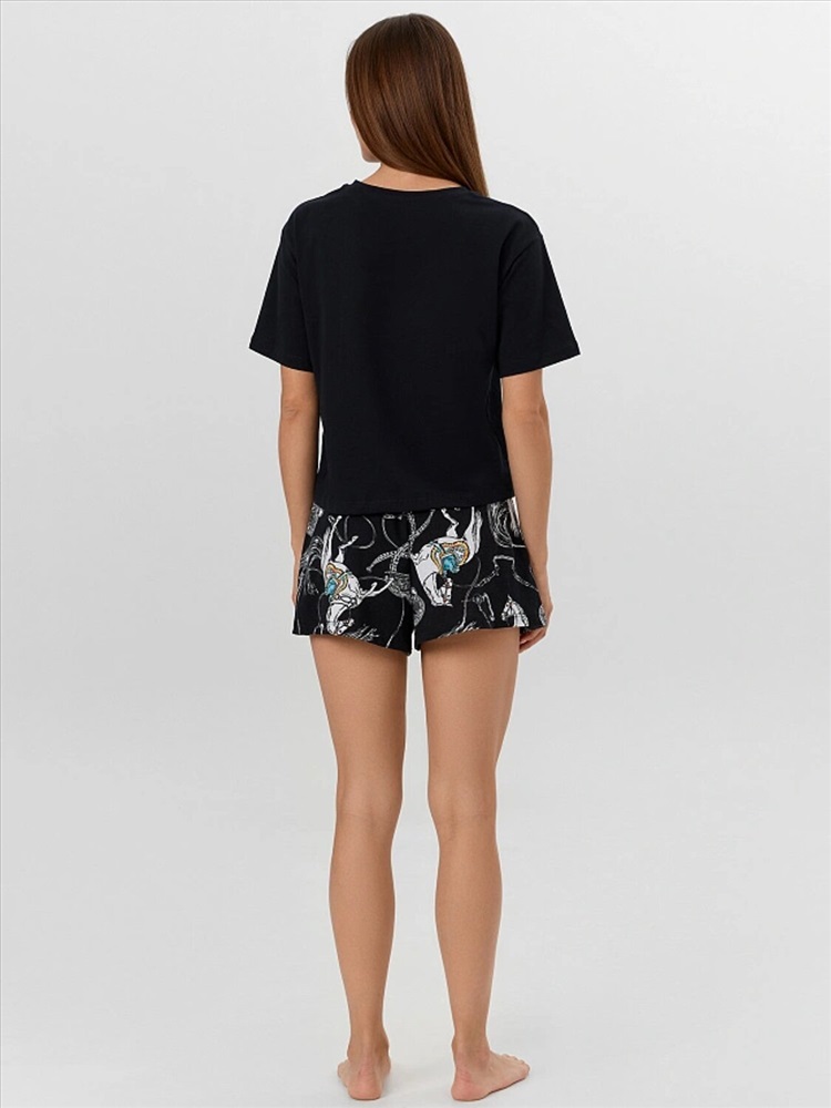 Рост: 164-170 Женская пижама, состоящая из футболки и шорт, выполнена из натурального хлопка — дышащего, мягкого и приятного к телу материала, идеально подходящего для комфортного сна и отдыха. Натуральная ткань обеспечивает хорошую воздухопроницаемость и не вызывает раздражения, что особенно важно для чувствительной кожи. Футболка свободного силуэта с круглой горловиной и слегка спущенной линией плеча создает расслабленный и уютный образ. Свободные рукава не ограничивают движения, а аккуратная обработка низа рукавов и самого изделия швом вподгибку подчеркивает качество пошива и делает модель визуально завершенной. Шорты короткие, свободного кроя, с эластичным поясом, который обеспечивает комфортную посадку без давления. Низ шорт также обработан швом вподгибку, что придает изделию аккуратный вид. Пижама идеально подойдет для домашнего отдыха, сна или уютных вечеров, сочетая в себе легкость, комфорт и лаконичный стиль.
