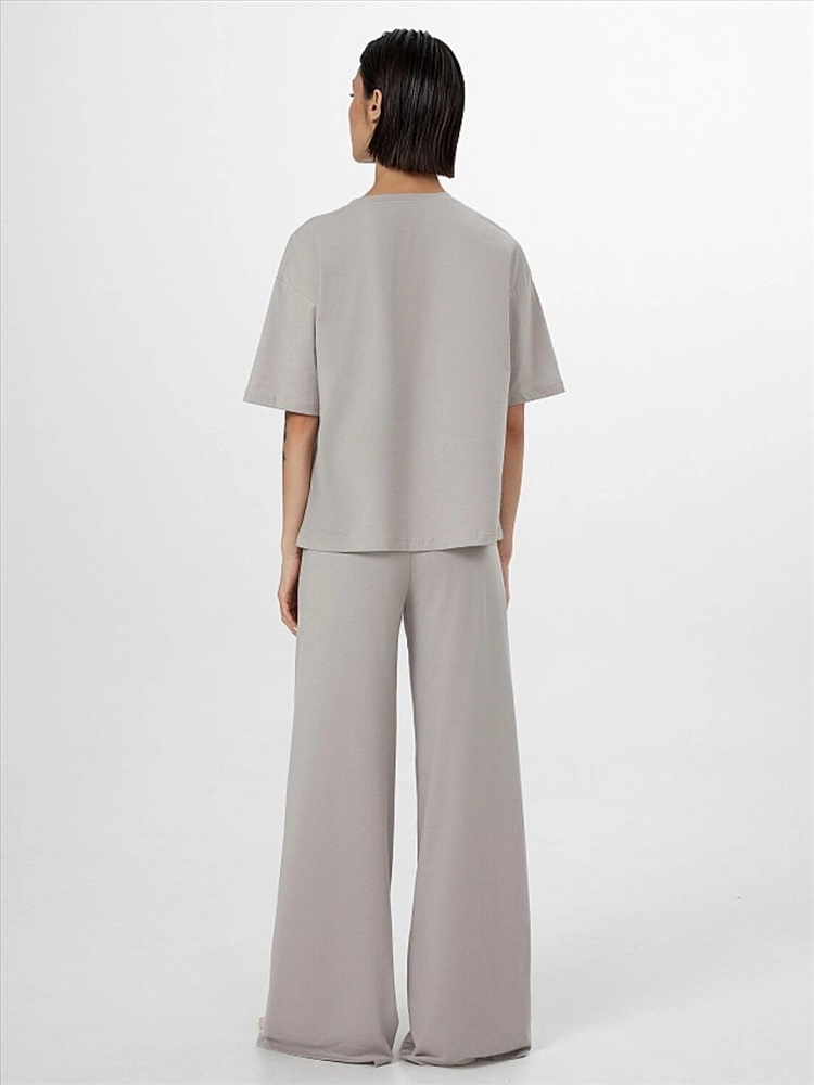 Российский размер: 44 Обхват груди: 88 Обхват бедер: 94 Артикул поставщика: 592592 Состав: 100% хлопок Год: 2025 Страна: Беларусь Пол: Женский Покрой/ Силуэт: свободный Уход за вещами: деликатная стирка при 30 градусах Утеплитель: без утепления Воротник: нет Предмет: Костюмы Тип рукава: короткие Опции капюшона: без капюшона Назначение: повседневная фактура материала: кулирное полотно Вырез горловины: округлый Сезонность СТАРАЯ: Всесезонное Тип карманов: без карманов Рост: 164-170 Женский домашний комплект — воплощение уюта и ненавязчивого стиля, созданного для максимального комфорта в течение дня. Свободная футболка с круглой горловиной и мягкими спущенными плечами дарит ощущение легкости и свободы, а просторные рукава обеспечивают удобство при любом движении. Обработка нижнего края и рукавов в подгибку сохраняет аккуратность и форму изделия после многократных стирок. Брюки также выполнены в свободном силуэте, что обеспечивает комфортную посадку и не сковывает движений. Эластичный пояс мягко фиксирует изделие на талии, подстраиваясь под индивидуальные особенности фигуры, а низ брюк, аккуратно обработанный швом в подгибку, завершает общий образ. Изготовленный из натуральной хлопковой кулирки, комплект отличается мягкостью, прочностью и отличной воздухопроницаемостью — идеальный выбор для домашнего отдыха, сна или неспешного утра. Эта модель легко вписывается в повседневный ритм и становится любимым элементом домашнего гардероба. Комментарии к товару