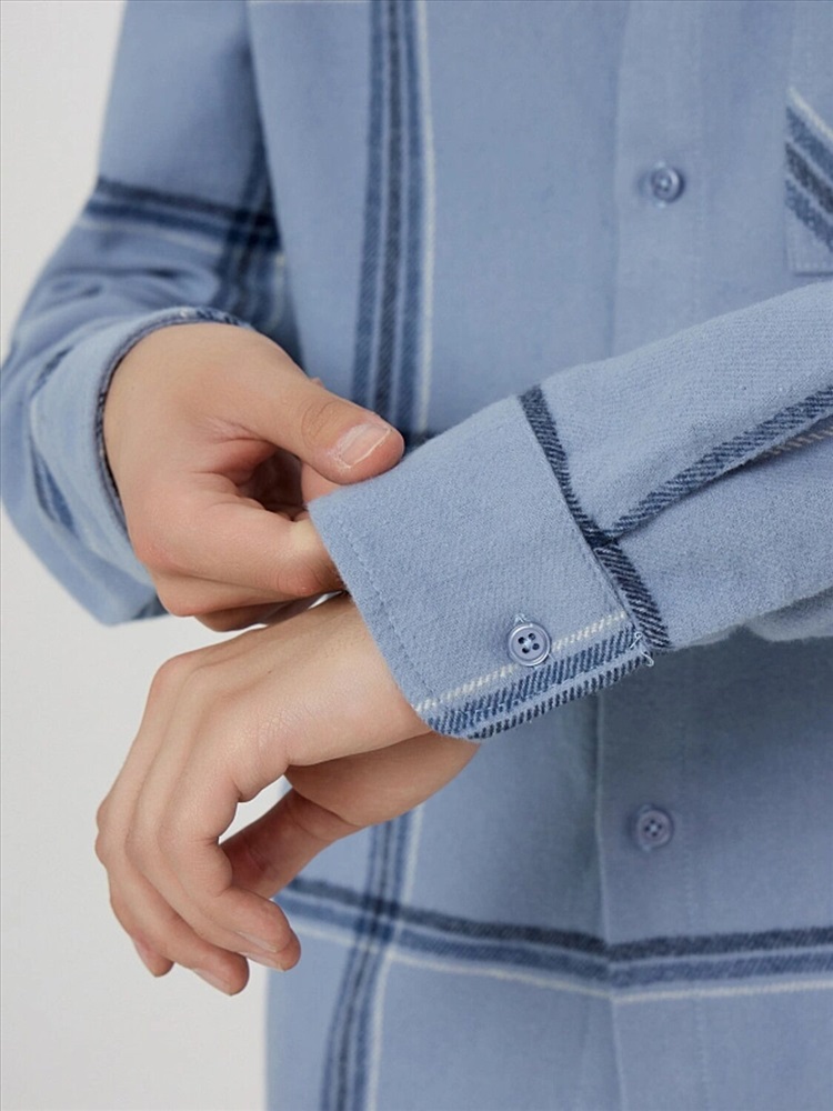 Спущенная линия плеча обеспечивает свободу движений, сохраняя при этом аккуратную посадку. Классический рубашечный воротник добавляет образу строгости и универсальности. Нагрудный карман слева выполнен в лаконичном дизайне, подчеркивает практичность модели без излишней вычурности.