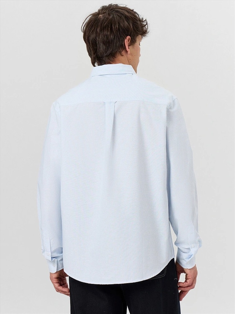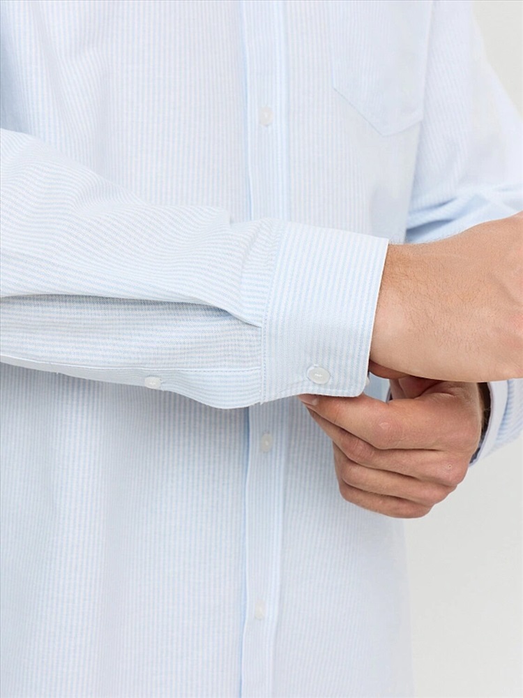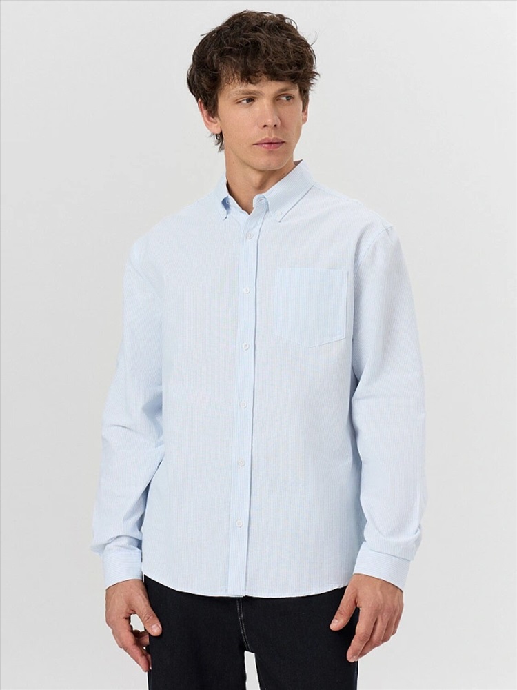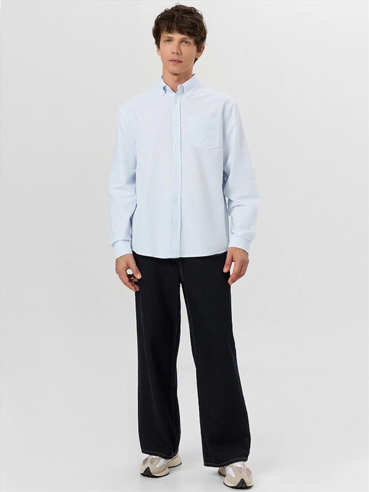 Пол: Мужской Мужская рубашка с длинными рукавами – воплощение сдержанной элегантности и универсальности. Классический крой с округлой горловиной и аккуратным рубашечным воротником создает строгий, но при этом комфортный силуэт.