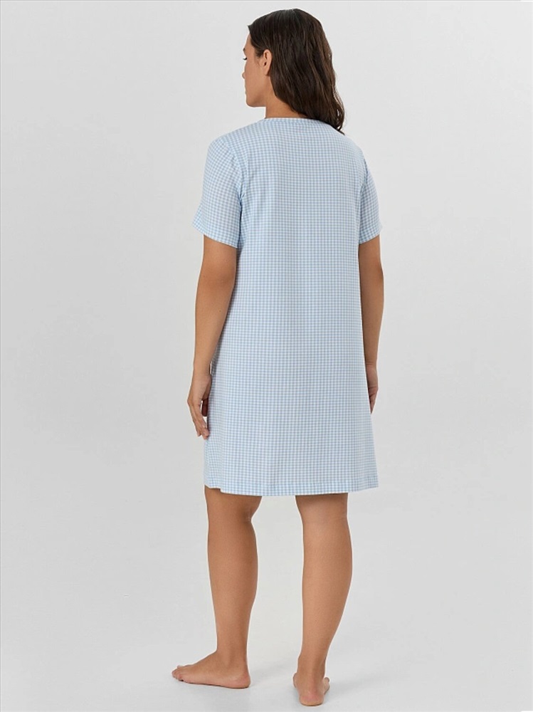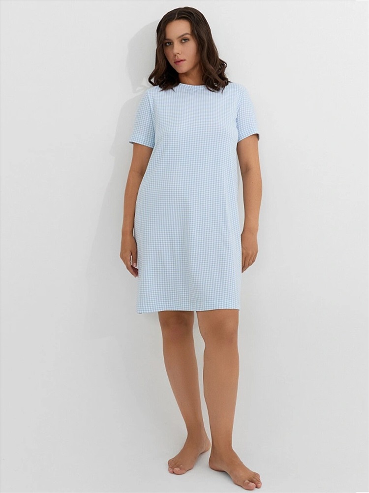 Рост: 164-170 Хлопковая женская сорочка свободного силуэта. Горловина круглой формы. Рукава короткие, линия плеча слегка спущена. Уютный вариант для сна!