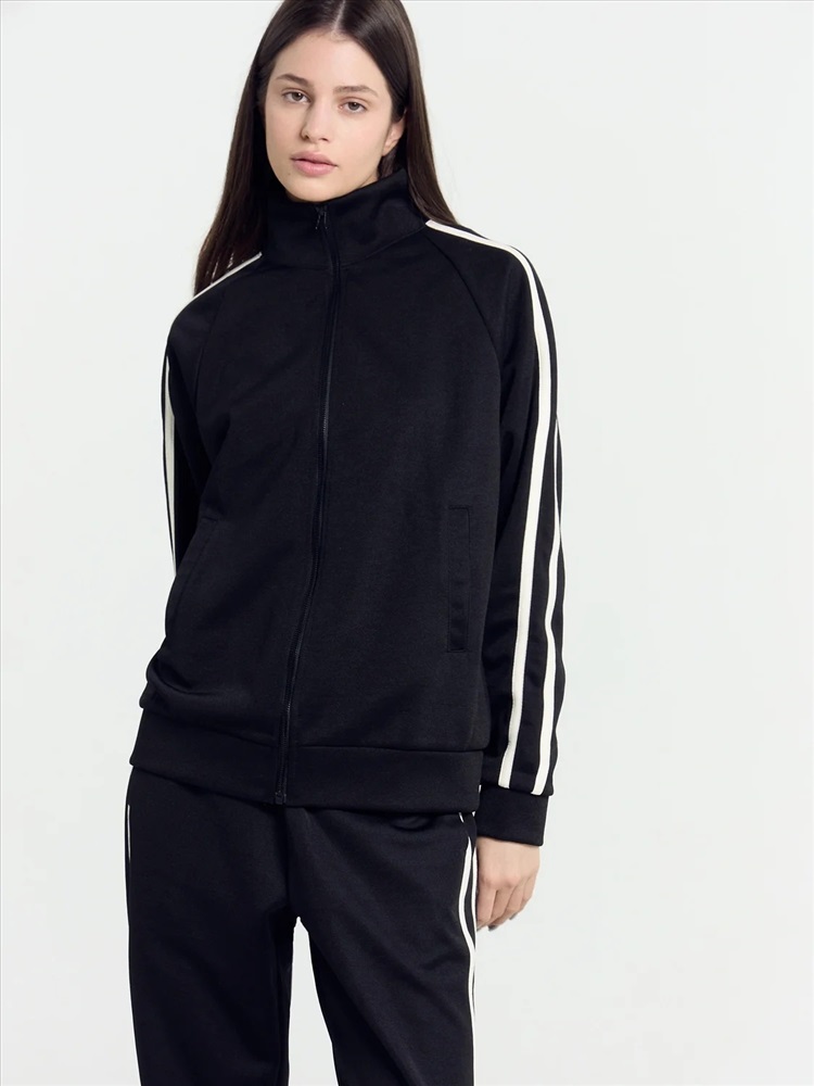 Обхват бедер: 94 Жакет изготовлен из трикотажного полотна интерлок. Жакет прямой свободный, длиной до середины бедер. Горловина округлой формы с воротником стойкой. Рукав реглан, с отрезными манжетами. По центру рукава настрочены лампасы из кулирки. По переду обработаны прорезные карманы с листочкой. Подкладка кармана из основного полотна. Центральная застежка на тесьму молнию. По низу жакета отрезной пояс. Пояс и манжеты из основного полотна.