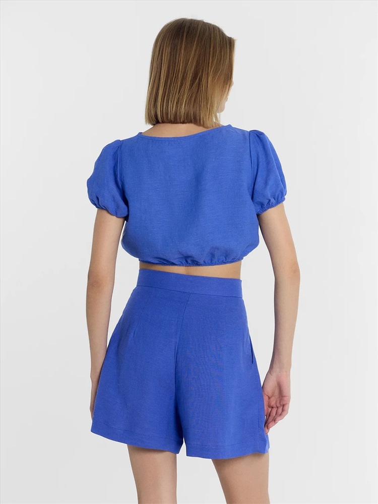 Артикул поставщика: 112852 Состав: 53% лен; 47% вискоза Год: 2024 Страна: Беларусь Сезонность: Всесезонное Вид бретелей: бретели не выделены Вырез горловины: лодочка Предмет: Топы фактура материала: текстильный Пол: Женский Покрой: свободный Уход за вещами: деликатная стирка при 30 градусах Назначение: повседневная Российский размер: 42 Рост: 170 Обхват груди: 84 Обхват бедер: 90 Топ женский свободный укороченный из ткани (выше линии талии). Перед и спинка цельные. Горловина лодочкой обработана бейкой из основного полотна в «чистый край». Рукав втачной короткий, по окату заложена встречная складка. Низ рукава на сборке, обработан швом вподгибку с эластичной тесьмой внутри. Низ изделия на сборке, обработан швом вподгибку с эластичной тесьмой внутри. Комментарии к товару
