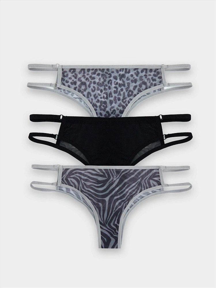 Модель трусов: бразилиана Интригующие женские трусики бразилиана с классической линией талии — это выбор для тех, кто ценит оригинальность и комфорт. Ультралегкий полупрозрачный сетчатый материал обеспечивает нежность и эластичность, создавая приятные ощущения на коже. Особенность модели — интересные вырезы в боковых частях, которые добавляют изящности и делают дизайн необычным. Эластичная ткань отлично тянется, не пережимает и не ограничивает движений, что делает трусики удобными для ежедневного ношения. Такой набор станет прекрасным вариантом для тех, кто ищет разнообразие и хочет добавить нотку нежности в свой гардероб. Красота и комфорт в новом дизайне — идеальный выбор! Рекомендуем. В наборе: 3 шт.