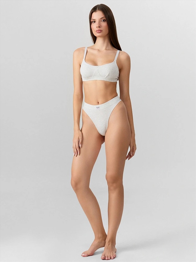 Сезонность СТАРАЯ: Всесезонное Трусы женские бразилиано со средней посадкой из кулирной глади. Ластовица отлетная по переднему краю. Талия обработана швом вподгибку с эластичной тесьмой 35 мм внутри (внутренняя эл.тесьма). Ножки обработаны швом вподгибку на плоскошовной машине. По центру на передней детали на поясе декор - тканая этикетка.