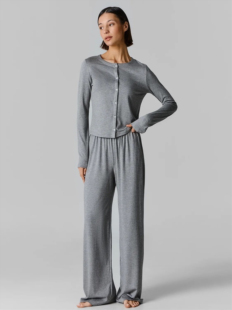 Рост: 164-170 Женский домашний кардиган прилегающего силуэта из эластичной вискозы — это элегантная и универсальная модель, которая подчеркивает фигуру и дарит ощущение уюта. Округлая горловина придает образу мягкость, а длинные рукава делают кардиган подходящим для любого времени года. Центральная застежка на пуговицы с петлями добавляет классический акцент и позволяет регулировать степень открытости. Низ изделия и рукавов аккуратно обработан швом вподгибку, что придаёт модели завершенный и опрятный вид. Эластичная вискоза в составе обеспечивает мягкость, отличную посадку и приятные тактильные ощущения, а также позволяет изделию сохранять форму даже после многократных стирок. Для создания стильного и гармоничного домашнего образа рекомендуем дополнить кардиган подходящими брюками из коллекции бренда. Такой комплект станет отличным выбором для отдыха дома, уютных вечеров или расслабленных выходных.
