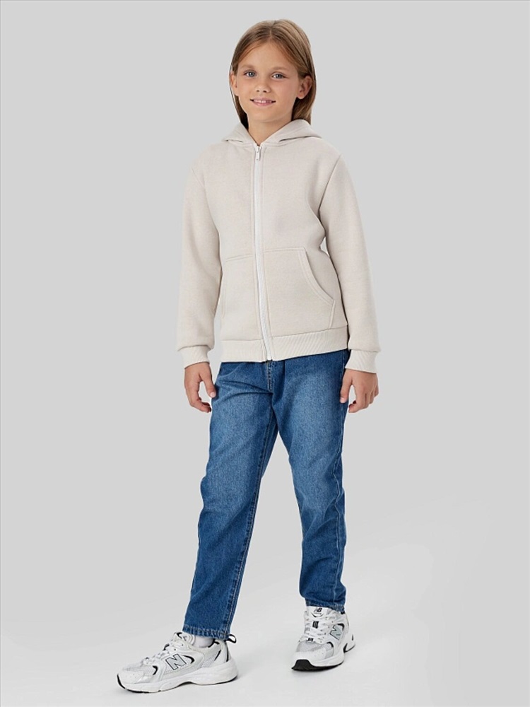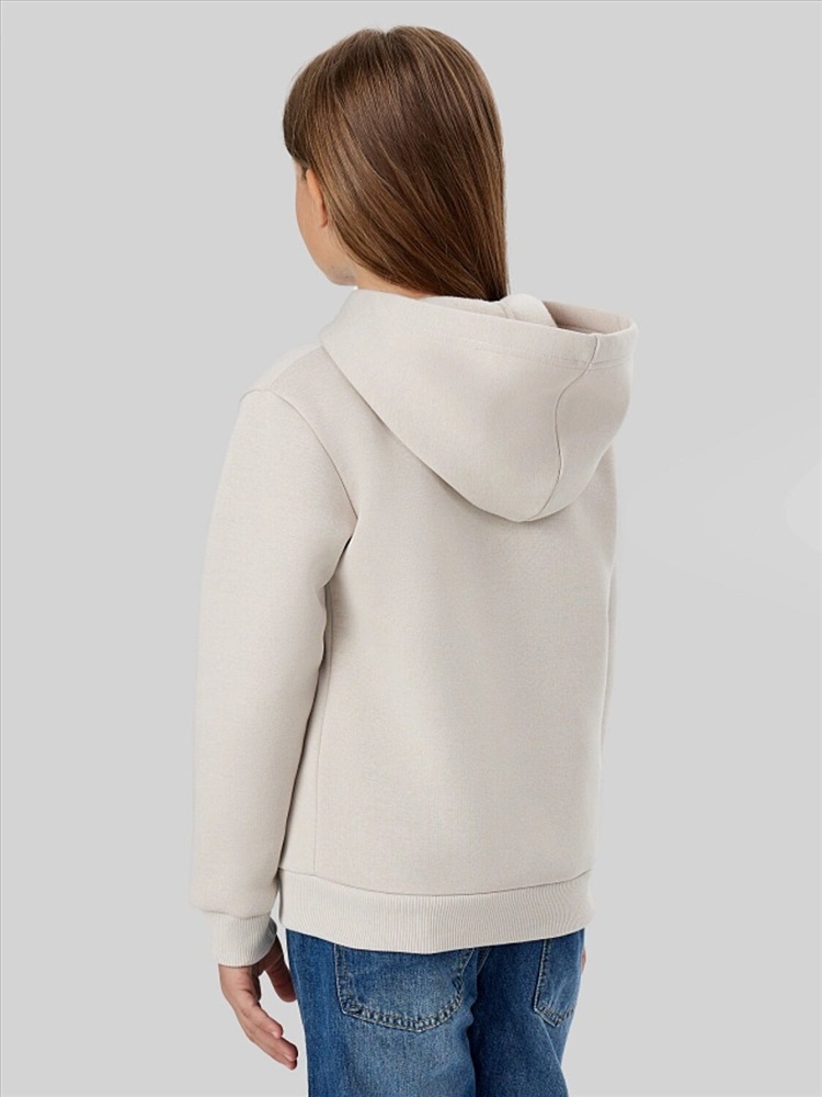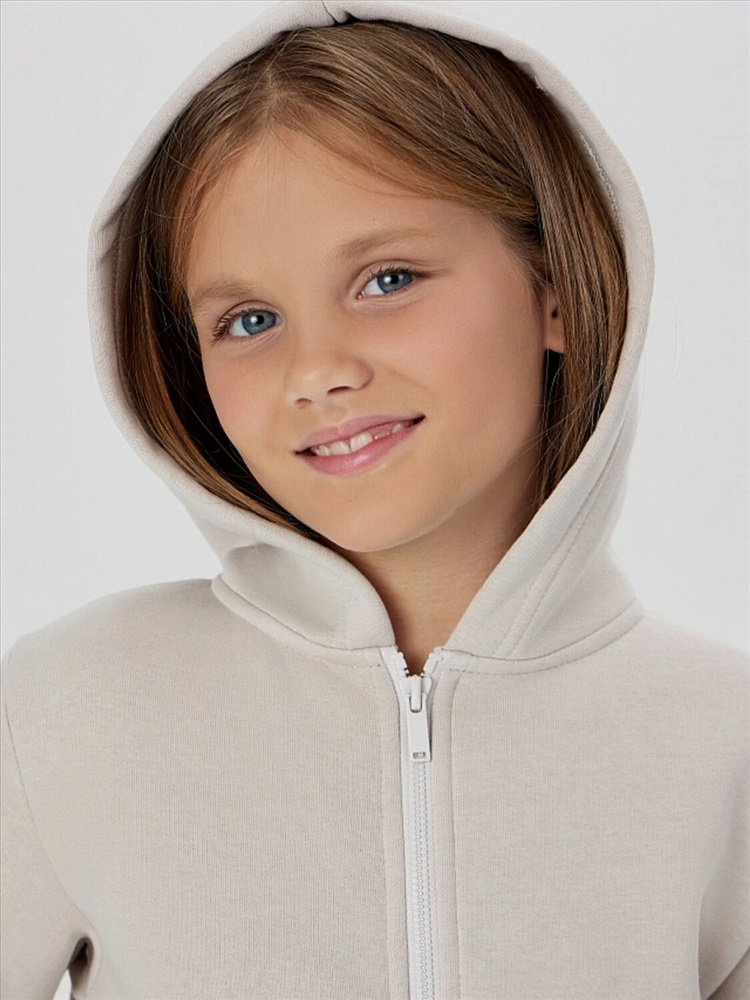 Утеплитель: начес Жакет из трикотажного футера с теплым подчесом. Спущенная линия плеча гарантирует свободу движений. Прямой свободный силуэт, уютный капюшон, длинные рукава на манжетах, удобный карман-кенгуру, центральная застежка на молнию – эта модель наверняка понравится вашей девочке.