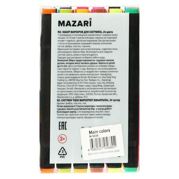Производитель: MAZARI; Габариты: 6,5 x 10 x 16; Артикул поставщика: M-15023-24; Страна: Китай; В боксе: 32 набор; В наборе: 24 набор; Состав: Пластик, чернила, пигмент, спиртовые растворители; Материалы: пластик, чернила, Пигмент, Спиртовые растворители; Фасовка: по 1 набор; Индивидуальная упаковка: Пластиковая упаковка / (PVC); Сертификат: ЕАС; Тип: Спиртовой; Тип наконечника: Пулевидный, Скошенный; Диаметр пишущего узла, мм: 3, 6,2; Назначение: Для бумаги; Набор: Да; Количество цветов: 24; Цвет: МИКС; Вид упаковки: PVC-коробка; Особенности: Двусторонние; Колпачок у фломастера: Невентилируемый