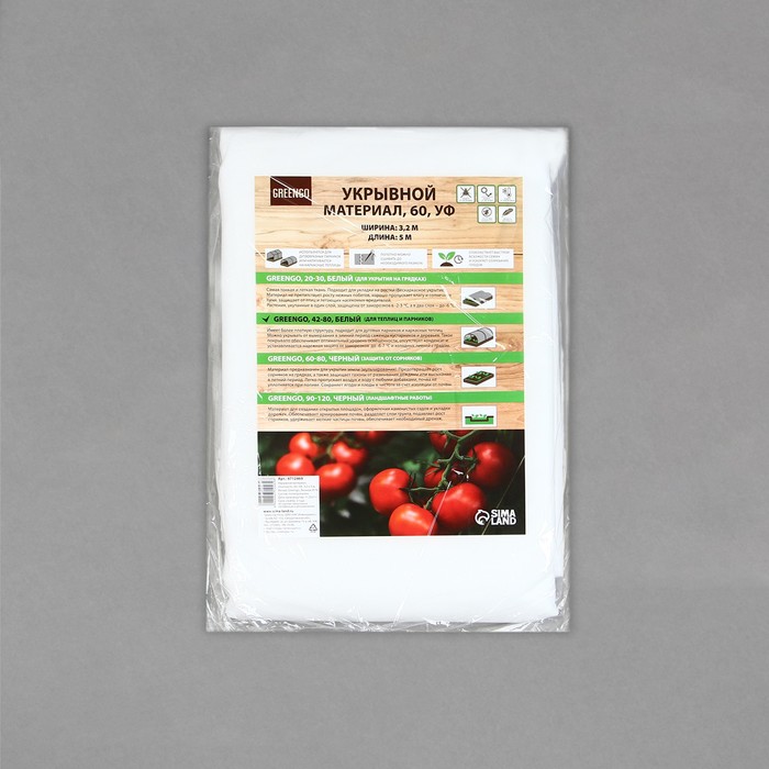 Производитель: Greengo; Габариты: 41 x 21 x 9; В боксе: 15 шт; Длина, м: 5; В рулоне: Нет; Фиксированная цена: Да; Доставка: Платная; Страна: Россия; Состав: Полипропилен; Материалы: полипропилен; Фасовка: по 1 шт; Индивидуальная упаковка: Пакет (БОПП, полиэтилен, ПВХ, дой-пак); Сертификат: Не подлежит сертификации; Цвет: Белый; Плотность, г/м²: 60; Ширина, м: 3,2; Материал: Спанбонд; Защита от ультрафиолета: Да; Назначение укрывного материала: Для укрытия