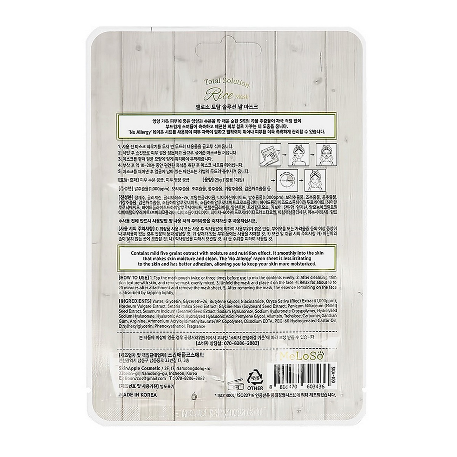 Рисовый экстракт способствует отшелушиванию ороговевших клеток, за счет чего тон кожи выравнивается, а также он обеспечивает увлажняющий и смягчающий эффект. Все компоненты в составе маски интенсивно воздействуют на кожу, обеспечивая долговременный эффект увлажнения, устраняя ощущение стянутости и шелушение. Тканевая основа маски плотно прилегает к коже, повторяя все контуры лица, и способствует активному проникновению полезных компонентов в глубокие слои кожи.