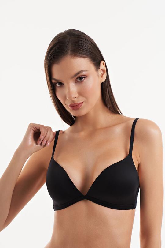 Бюстгальтер безкаркасный с формованной чашкой без пуш-ап. Гладкая формованная чашка, стан и боковые детали из эластичного полотна. Открыта в области декольте.