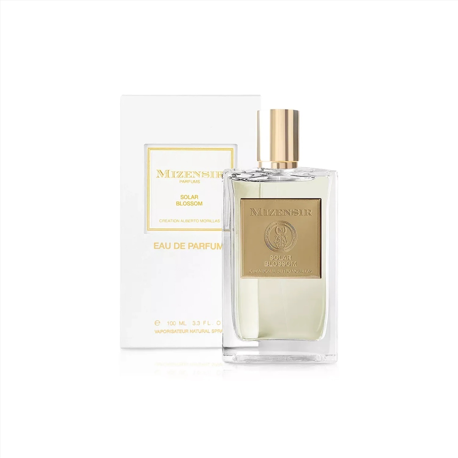 Древесно-амариллисовый приятный запах эфирного масла нероли (цветков горького померанца), усиленный особой парфюмерной молекулой парадизон, открывают аромат, наполняясь в средних нотках пирамидки композиции чудесными цветочными оттенками апельсинового цвета и изысканного белого жасмина. Мягкие и насыщенные сладковато-пудровые оттенки соблазнительной ванили завершают женский парфюм Mizensir Solar Blossom, формируя нежное ароматическое послевкусие.