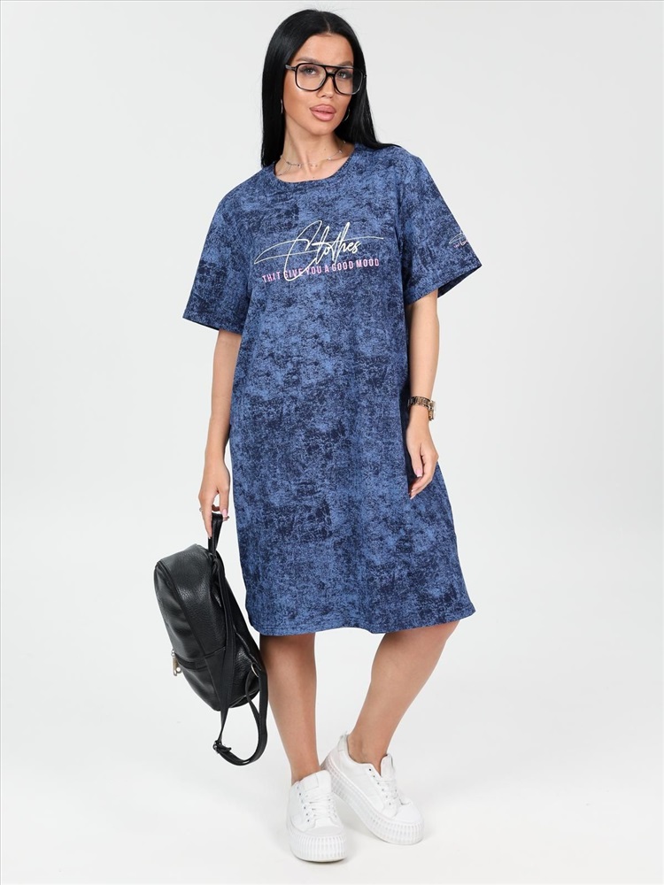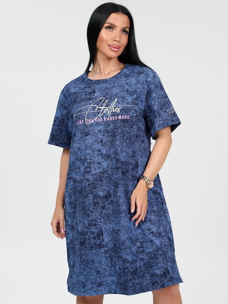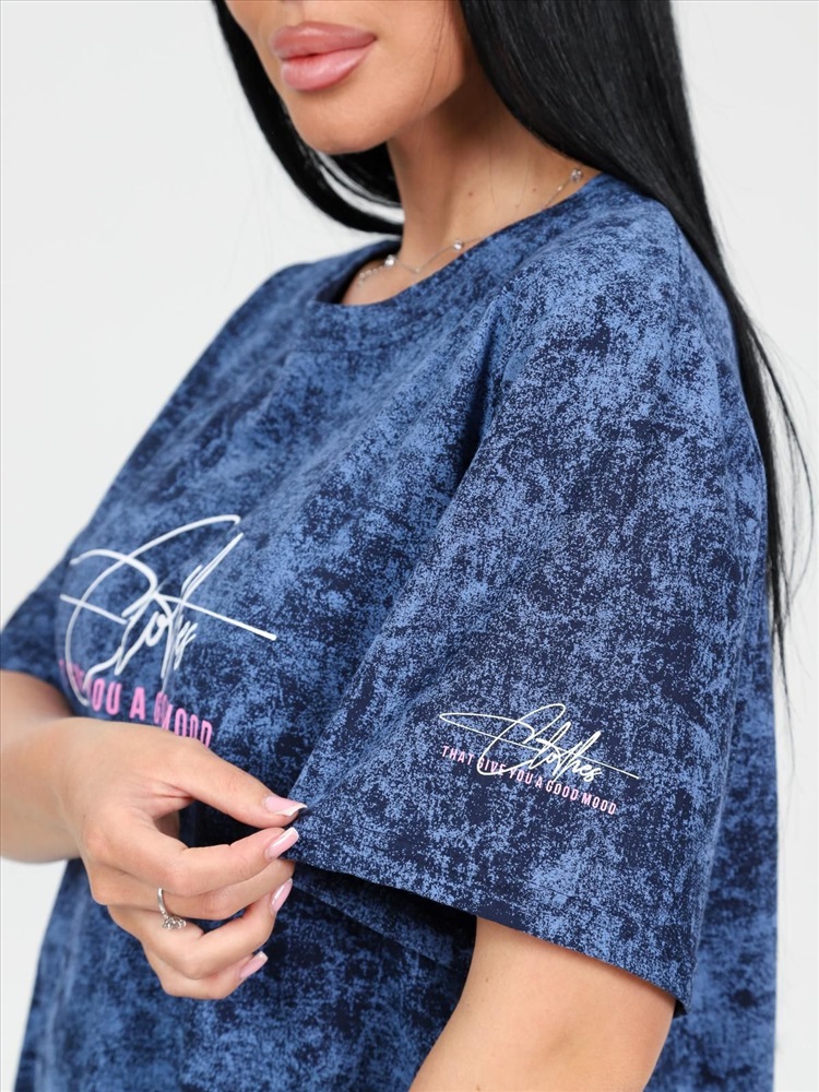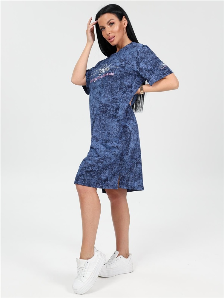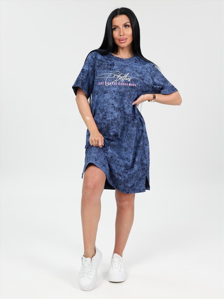 цвет: синий Материал: Кулирка Трикотаж - Кулирка (Хлопок 100%). Туника выполнена из 100% хлопка высокой плотности. Туника без карманов, горловина обработана обтачкой из основной ткани. На груди и на одном рукаве модный принт, который придает изюминку изделию. По бокам небольшие разрезы. Комментарии к товару