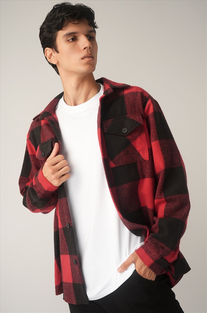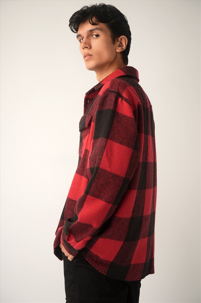 Преимущества: — байковая рубашка сохраняет тепло и идеально подходит для прохладных осенних и весенних дней; — плотная рубашка оверсайз со свободным кроем не стесняет движений; — клетчатая рубашка с длинным рукавом и отложным воротником добавляет образу харизмы; — красная рубашка подойдет на каждый день; — хлопковая рубашка устойчива к частым стиркам и сохраняет насыщенность цвета; — удлинённая рубашка с удобными нагрудными карманами станет стильным акцентом в многослойном образе. Свободная рубашка для мужчин отлично смотрится в спортивном и уличном стилях. Рост модели 185, параметры: объем груди 87, объем талии 78, объем бедер 97. На нем размер 52-54.