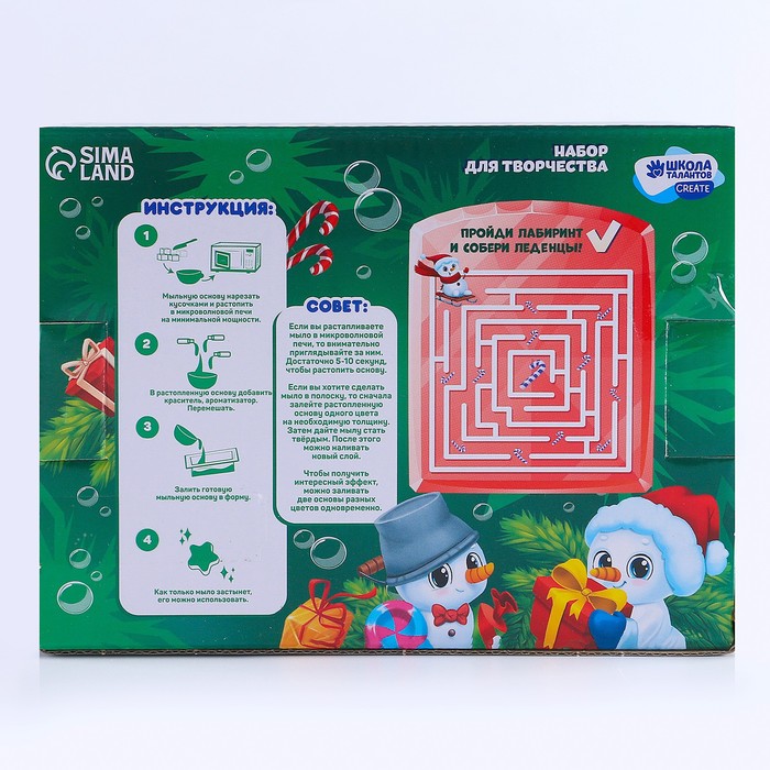 Производитель: Школа талантов; Габариты: 8,5 x 18,5 x 13,5; Страна: Россия; В боксе: 50 набор; Состав: Мыло, краситель, ароматизатор; Материалы: мыло, краситель, ароматизатор; Фасовка: по 1 набор; Индивидуальная упаковка: Цветная картонная коробка; Сертификат: ЕАС; Для кого: Унисекс; Возраст: От 7 лет; Тематика: Новогодняя; Символ года: Нет; Тематика праздника: Новый год; Аромат: Яблоко; Тип: Мыловарение; Для создания: Мыло; Составляющие набора: Товары для творчества