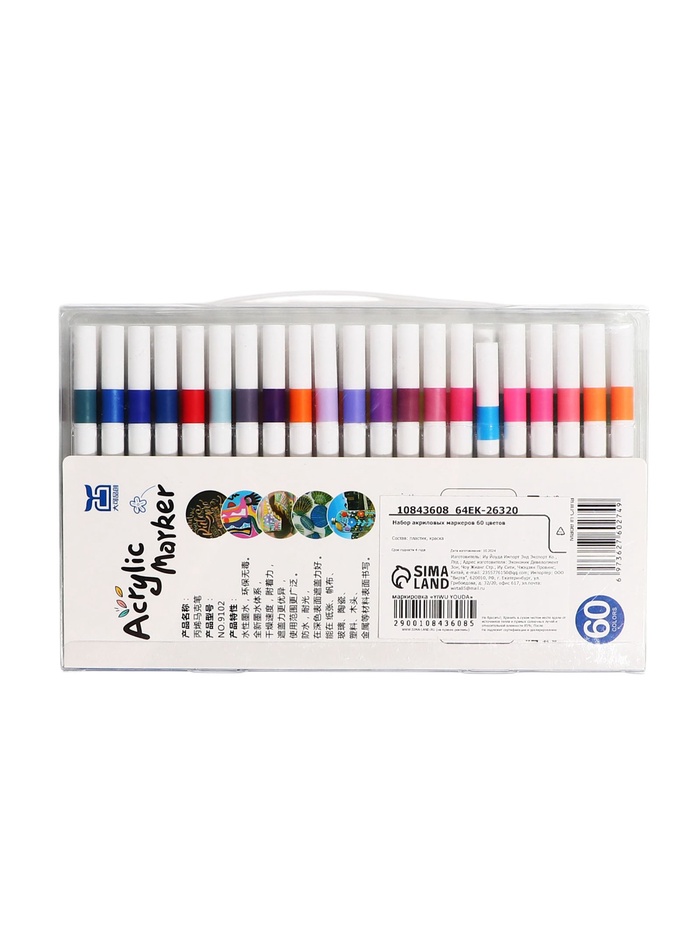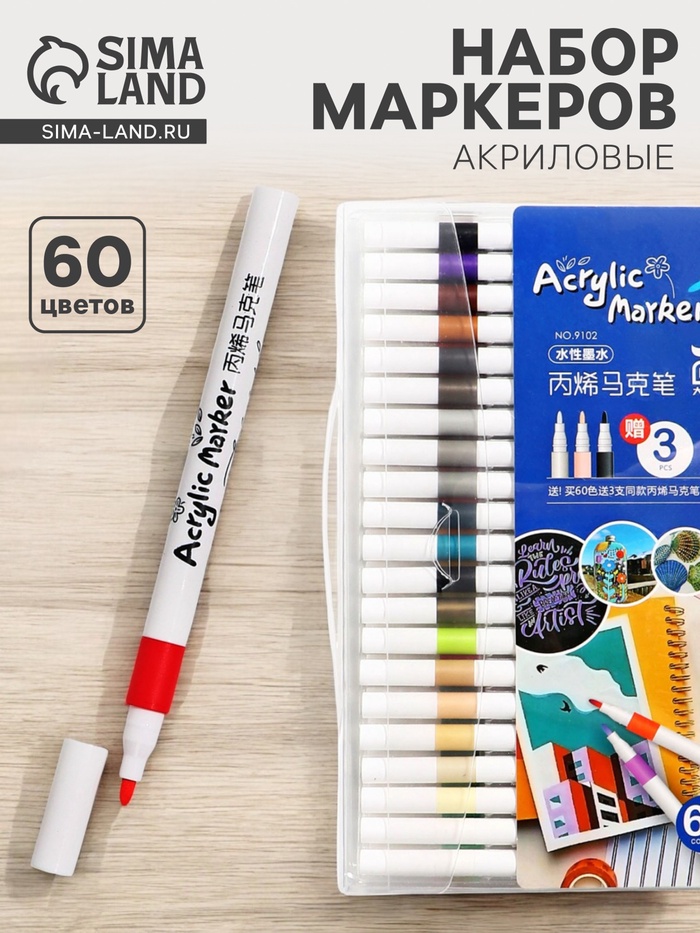 Набор из 60 акриловых маркеров — это максимальная палитра для профессионального и любительского творчества. Пулевидный наконечник обеспечивает точность линий, а акриловые чернила подходят для различных поверхностей. Упакованы в удобную пластиковую упаковку.