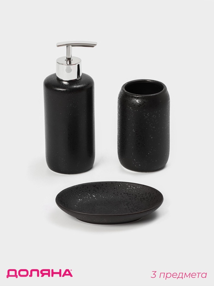 Производитель: Доляна; Габариты: 21 x 8 x 19; Страна: Китай; В боксе: 12 набор; В наборе: 3 набор; Состав: Керамика, пластик; Материалы: керамика, пластик; Фасовка: по 1 набор; Индивидуальная упаковка: Цветная картонная коробка; Габариты товара: 15 см × 11 см × 10 см; Сертификат: Не подлежит сертификации; Набор: Да; Цвет: Чёрный; В наборе, шт.: 3; Объём, мл: 350; Тематика: Текстура; Рисунок: Нет; Материал: Керамика; Наличие губки/щётки: Нет; Настенные: Нет