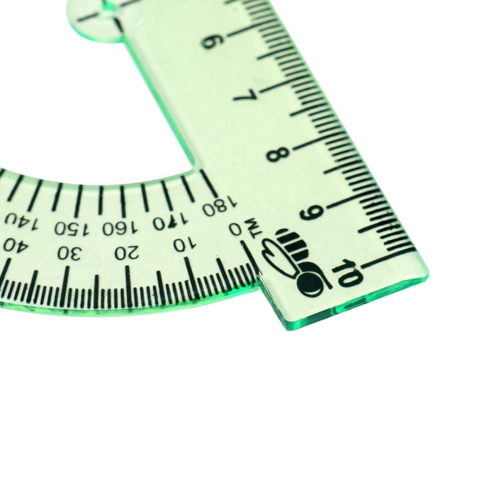 * Комплект включает линейку длиной 20 см для измерений, два угольника для построения углов в 30°, 60°, 45° и 90°, а также полукруглый транспортир для измерения произвольных углов.