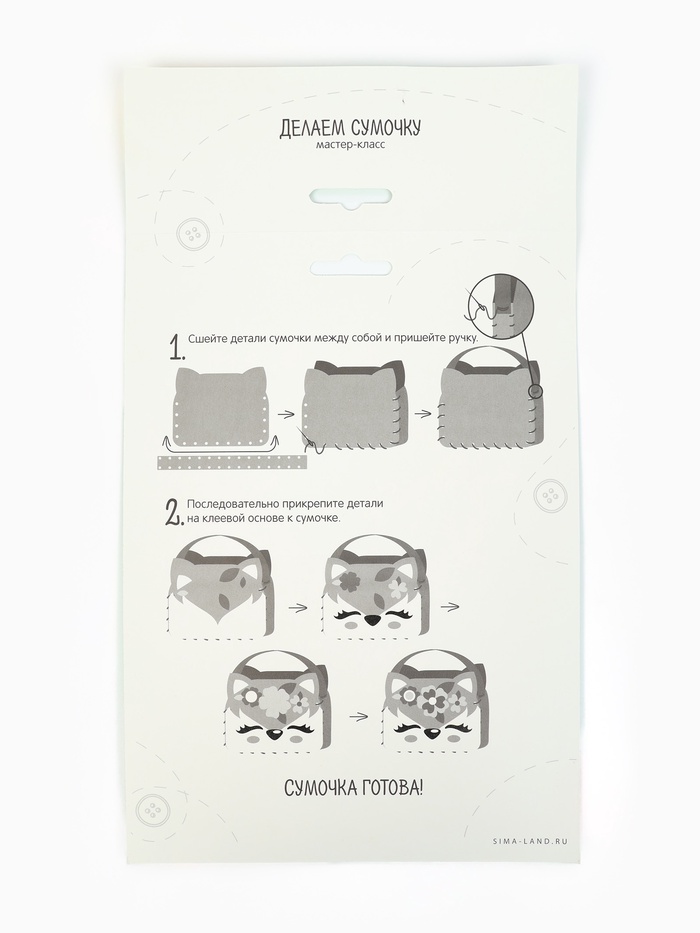 Ваша маленькая модница будет в восторге, ведь теперь она сама сможет стать дизайнером сумки и сшить ее! Выберите понравившийся набор и вместе с малышом создайте сумочку из фетра. Если вам кажется это сложным для ребенка, то спешим уверить в обратном, все просто! Ведь такой набор предусмотрен для детей от 3 лет, у сумки есть перфорация и клеевой фетр, она легко сшивается пластиковой иглой. Материалы безопасны для ребенка, чтобы выполнить такую поделку, достаточно следовать инструкции на обороте.