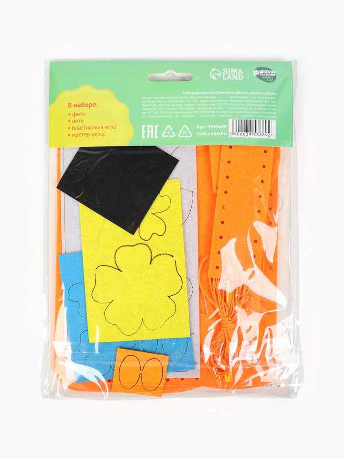 Производитель: Школа талантов; Габариты: 20,5 x 15,3 x 1; Страна: Китай; В боксе: 260 набор; Состав: Бумага, пластик, текстиль; Материалы: бумага, пластик, текстиль; Фасовка: по 1 набор; Индивидуальная упаковка: Пакет (БОПП, полиэтилен, ПВХ, дой-пак); Габариты товара: 20,5 см × 15,5 см × 0,5 см; Сертификат: ЕАС; Набор: Да; Цвет: Оранжевый; Для кого: Для девочки; Возраст: От 3 лет; Тематика праздника: 8 Марта, Универсальная тематика; Материал: Пластик, Фетр, Бумага; Тип: Набор для шитья