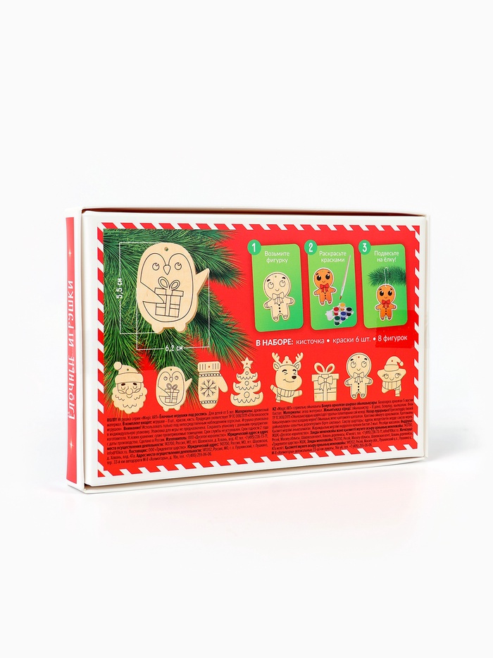 Производитель: Десятое Королевство; Габариты: 17 x 11,5 x 2; Страна: Россия; В боксе: 26 набор; Состав: См. на упаковке; Материалы: см. на упаковке; Фасовка: по 1 набор; Индивидуальная упаковка: Цветная картонная коробка; Сертификат: ЕАС; Вид: По дереву; Вид заготовки: Ёлочное украшение; Комплектация набора: С красками, С кистью (-ями), Фигурки