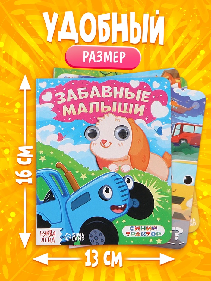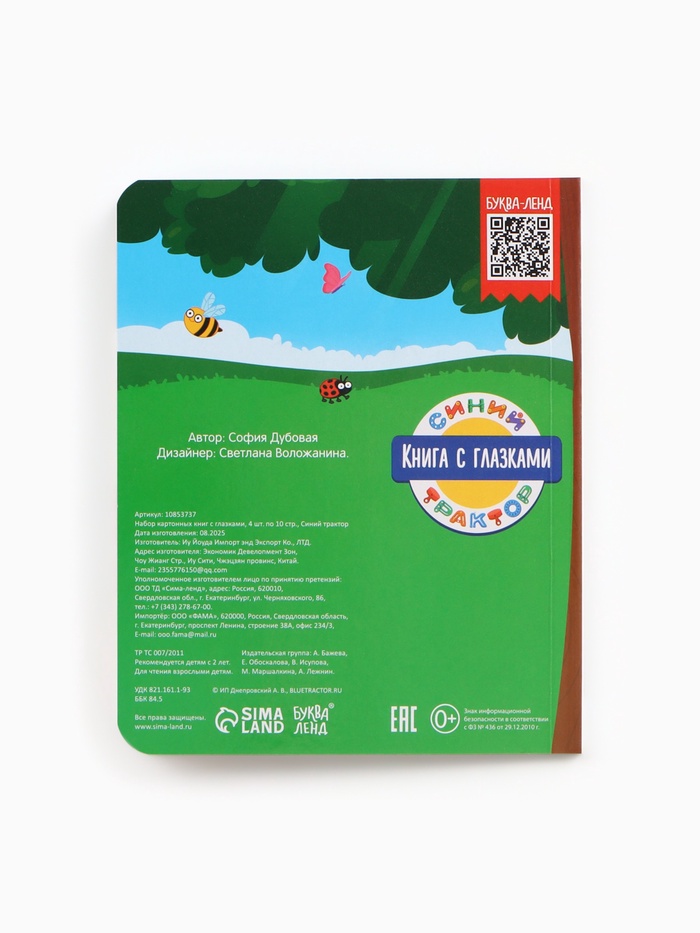 Производитель: Синий трактор; Габариты: 16 x 13 x 1,5; Страна: Китай; В боксе: 56 набор; В наборе: 4 набор; Состав: Картон, пластик; Материалы: картон, пластик; Фасовка: по 14 набор; Индивидуальная упаковка: Пакет (БОПП, полиэтилен, ПВХ, дой-пак); Габариты товара: 13 см × 16 см × 2 см; Сертификат: ЕАС; Набор: Да; Формат: В6-; Возраст: От 2 лет; Количество страниц: 10; Год издания: 2025; Тип: С глазками; Язык издания: Русский; Тип обложки: Твёрдый переплёт; Автор: Коллектив авторов