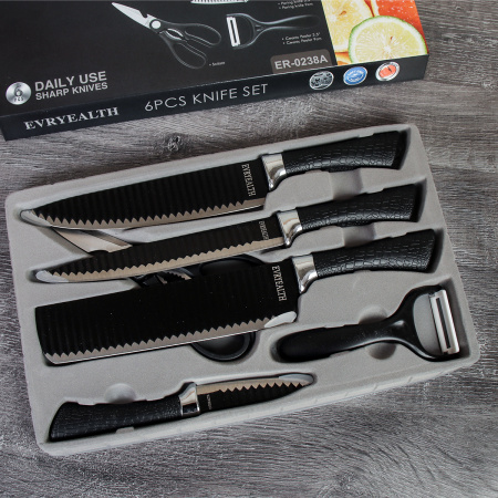Набор кухонных ножей 6 предметов в коробке / WD-101 /уп 30/ножницы и овощечистка в комплекте