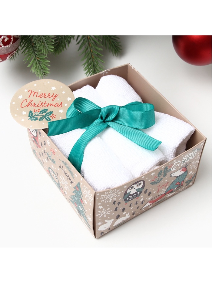 Производитель: Этель; Габариты: 12 x 12 x 7,5; Страна: Россия; В боксе: 75 набор; Состав: Хлопок 100%; Материалы: хлопок; Фасовка: по 1 набор; Сертификат: ЕАС; Набор: Да; Цвет: Белый; Для кого: Для женщины; Форма: Квадратная; Ткань: Махра; Плотность, г/м²: 340; Размер, см: 30 х 30; В наборе, шт.: 3; Тематика: Новогодняя, Животный мир; Вид упаковки: Термоусадочная плёнка, Подарочная коробка; Рисунок: Да; Тематика праздника: Новый год; Адресат: Без адресата; Возраст: Взрослый; Материал: Хлопок; Декоративные элементы: Без элементов; Рекомендации по уходу: Деликатная стирка при 40 °С, Деликатный режим отжима, Глажка при 150 °С, Химчистка запрещена, Не отбеливать; Назначение полотенец: Для ног, Для лица; Состав ткани: Хлопок; Составляющие набора: Полотенце; Возраст: Для взрослых, Для детей; В подарочной упаковке: Да; С петелькой: Нет; Особенности: Без особенностей