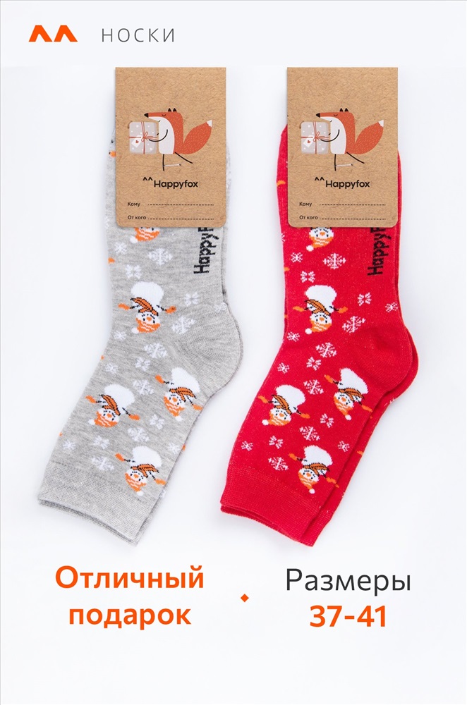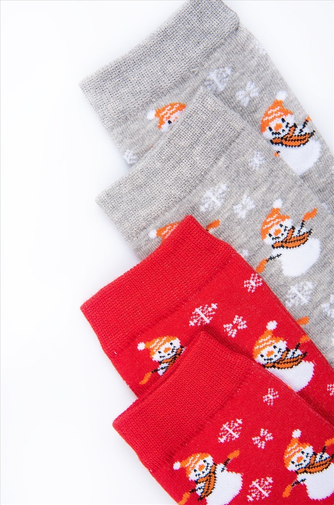 Набор женских носков с новогодним рисунком 2 пары из нежного хлопка – важный атрибут праздничного настроения. Новогодние носки выполнены в сером и красном цветах и украшены узором снеговики и снежинки. Высокие носки идеальны в качестве подарка на Новый год и Рождество.