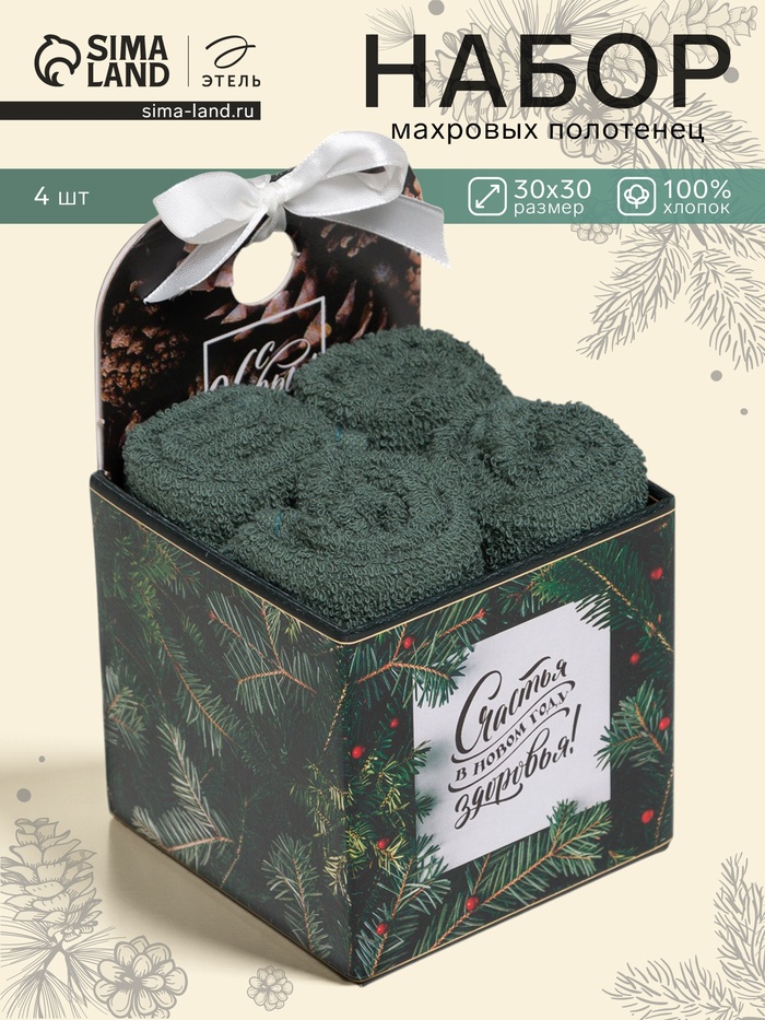 Производитель: Этель; Габариты: 16 x 10 x 10; Страна: Россия; В боксе: 56 комплект; Состав: Хлопок 100%; Материалы: хлопок; Фасовка: по 1 комплект; Сертификат: ЕАС; Набор: Да; Цвет: Зелёный; Для кого: Унисекс; Ткань: Махра; Плотность, г/м²: 340; Размер, см: 30 х 30; В наборе, шт.: 4; Тематика: Новогодняя; Вид упаковки: Подарочная коробка, Термоусадочная плёнка; Символ года: Нет; Тематика праздника: Новый год; Адресат: Без адресата; Декоративные элементы: Без элементов; Рекомендации по уходу: Деликатная стирка при 40 °С, Деликатный режим отжима, Не отбеливать, Глажка при 150 °С, Химчистка запрещена; Назначение полотенец: Для лица, Для ног; Состав ткани: Хлопок; Составляющие набора: Полотенце; Возраст: Для взрослых; В подарочной упаковке: Да; Особенности: Без особенностей; Стиль: Новогоднее барокко