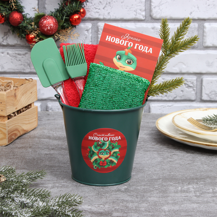 Производитель: Доляна; Габариты: 19 x 13 x 13; Страна: Россия; В боксе: 25 комплект; Состав: Дерево, металл, пластик, хлопок 100%; Материалы: дерево, металл, пластик, хлопок; Фасовка: по 1 комплект; Сертификат: ЕАС; Набор: Да; Цвет: Зелёный, Красный; Для кого: Для женщины; Ткань: Махра; Плотность, г/м²: 240; В наборе, шт.: 6; Тематика: Новогодняя; Вид упаковки: PVC-пакет; Рисунок: Да; Символ года: Нет; Тематика праздника: Новый год; Адресат: Без адресата; Декоративные элементы: Рисунок; Рекомендации по уходу: Стирка при 30 °С, Не отбеливать; Состав ткани: Хлопок; Составляющие набора: Кулинарная кисть, Ведёрко, Губка для мытья посуды, Декор, Полотенце, Лопатка; Возраст: Для взрослых; В подарочной упаковке: Да