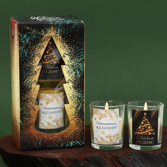 Набор свечей ароматических «Новогоднего исполнения желаний», ваниль, 9.4×17.8×5.4 см