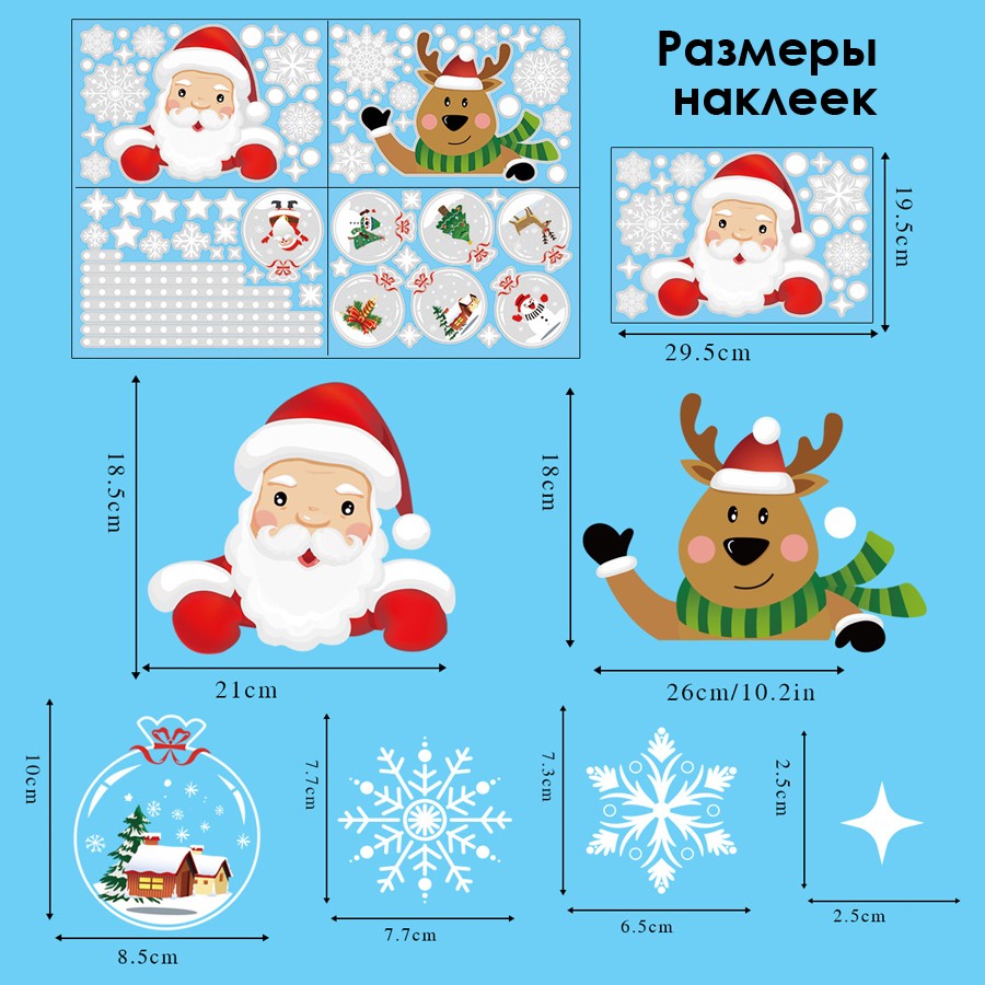 Декоративные новогодние наклейки на окна принесут дух праздника и веселья! Новогодние наклейки не содержат клеевой слой, крепятся к поверхности посредством статического эффекта, благодаря этому являются многоразовыми. Можно использовать повторно: Просто положите рождественские оконные наклейки в прохладное место, когда они не используются. Способ применения: Комментарии к товару
