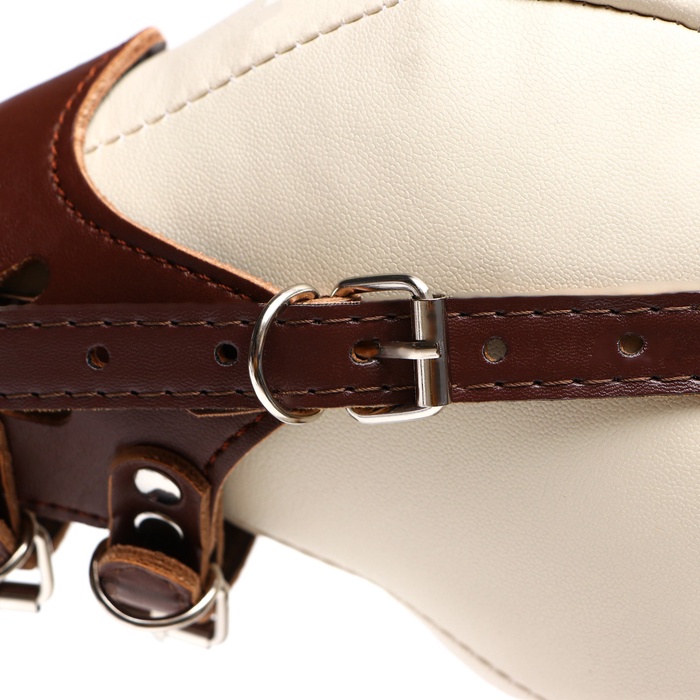 Намордник изготовлен из высококачественной прессованной кожи, что обеспечивает прочность и долговечность изделия. Этот материал также легко чистится и устойчив к износу.
