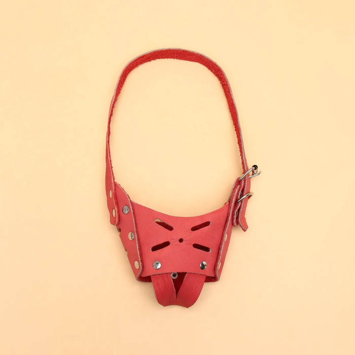 Намордник изготовлен из мягкой кожи, что обеспечивает прочность и долговечность изделия. Этот материал также легко чистится и устойчив к износу.