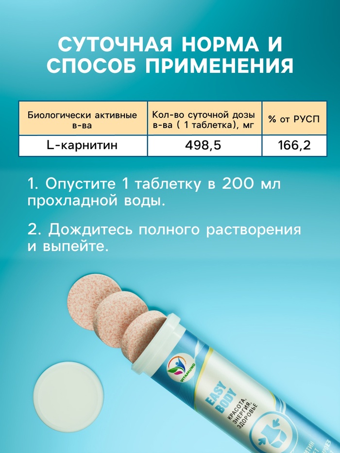 Easy Body Vitamuno — это уникальный напиток, содержащий комплекс витаминов и минералов, необходимых для поддержания здоровья и энергии вашего тела. Каждая шипучая таблетка обеспечивает быстрое усвоение полезных веществ и насыщение организма витаминами.