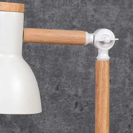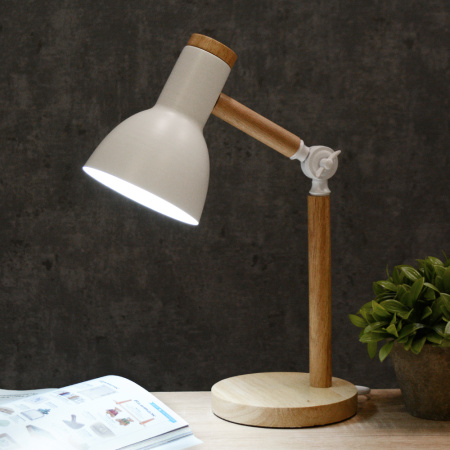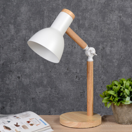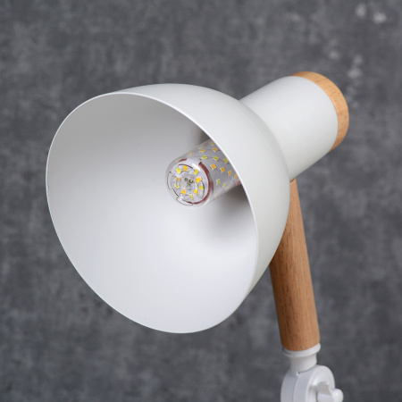 Настольный светильник Белый плафон Деревянное основание E27 /Размер: 220мм*450мм С лампой светодиодной 6Вт Три режима тёплый-нейтральный-холод /уп 10/