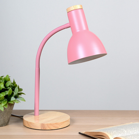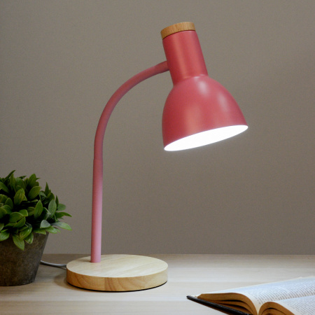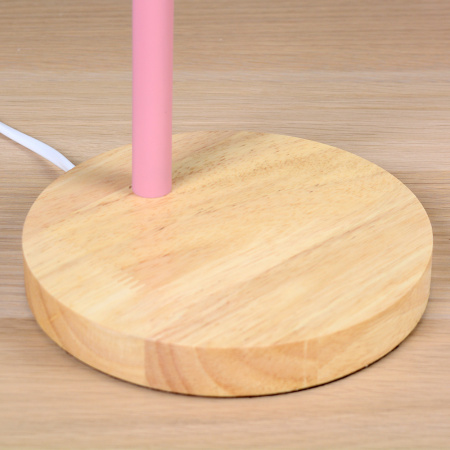 Настольный светильник Розовый плафон Деревянное основание E27 /Размер: 190мм*460мм С лампой светодиодной 6Вт Три режима тёплый-нейтральный-хол /уп 10/