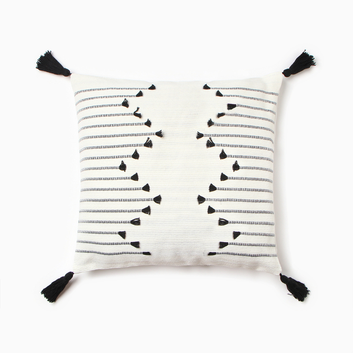 Производитель: Этель; Габариты: 46 x 45 x 1,5; Страна: Китай; В боксе: 100 шт; Состав: Хлопок 100%; Материалы: хлопок; Фасовка: по 1 шт; Индивидуальная упаковка: Пакет (БОПП, полиэтилен, ПВХ, дой-пак); Габариты товара: 45 см × 45 см; Сертификат: ЕАС; Набор: Нет; Цвет: Белый, Бежевый; Для кого: Для женщины; Форма: Квадратная; Размер наволочки, см: 45 х 45; Размер, см: 45 х 45; Вид застёжки: Молния; Тематика: Узоры; Вид упаковки: Пакет; Тематика праздника: Универсальная тематика; Декоративные элементы: Кисточки; Рекомендации по уходу: Стирка при 30 °С, Бережный режим глажки, Не отбеливать; Состав ткани: Хлопок; Фиксированная цена: Да