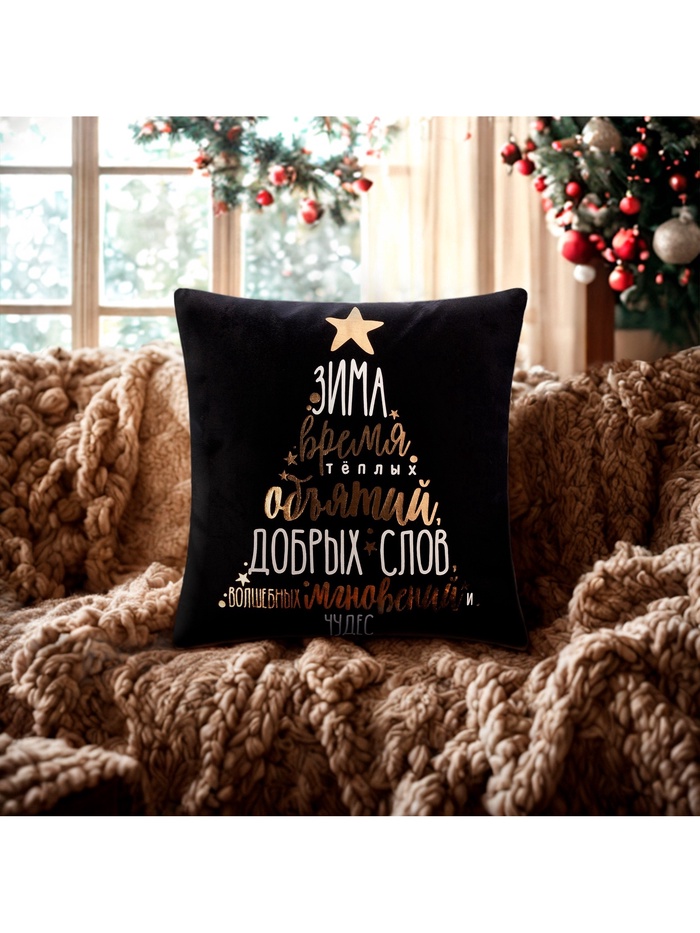 Этот чехол на подушку выполнен из мягкого велюра с приятной фактурой и отлично подходит для праздничного оформления интерьера в новогодний сезон. Благодаря классическому черному цвету и аккуратной молнии, он легко сочетается с различными стилями декора и обеспечивает удобство в использовании. Размер 40×40 см делает его универсальным аксессуаром для подушек различной формы и размера, создавая уютную атмосферу дома или в офисе.