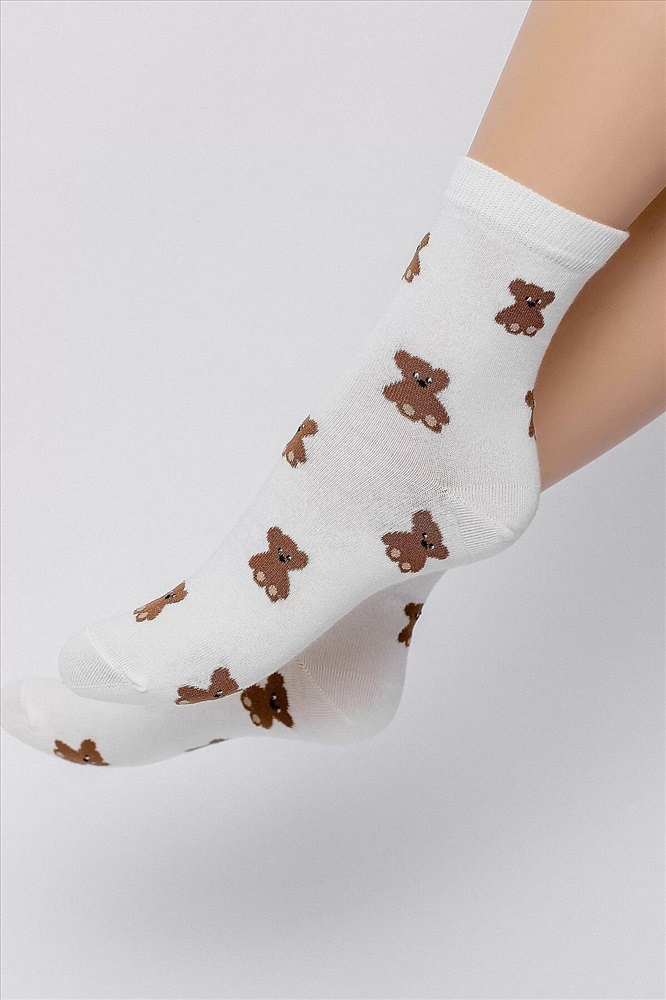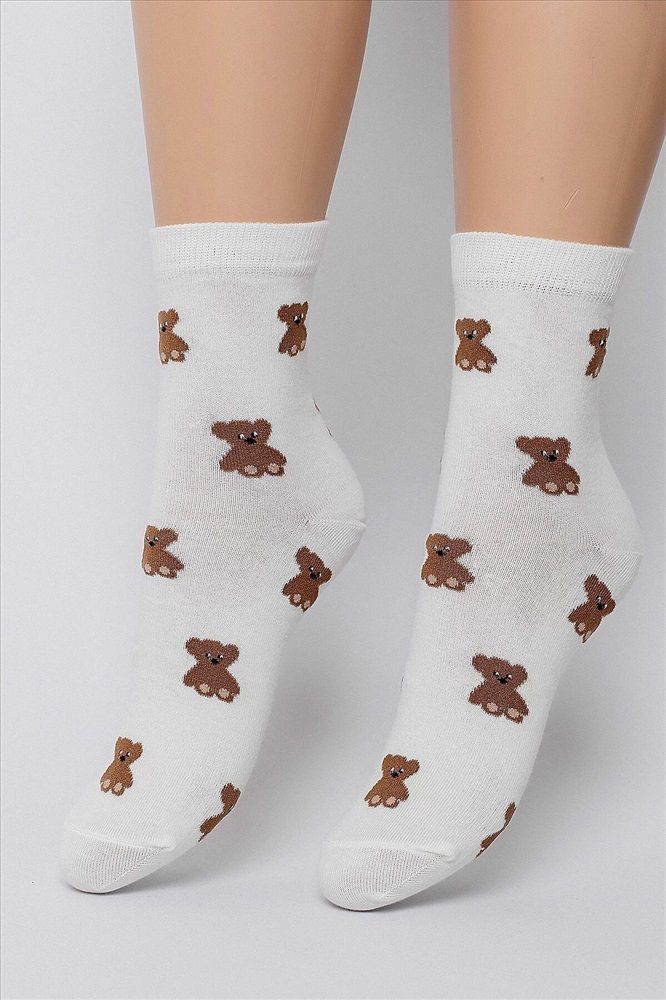 ПРОДАЕТСЯ ПО 6 ШТУК! Носки для детей белые с рисунком в виде мишек, средней высоты. Носочки детские для мальчиков и девочек подойдут для прогулок на свежем воздухе и домашней носки. Летние носочки можно носить с домашними вещами или надеть на улицу, они прекрасно подходят под летнюю обувь.