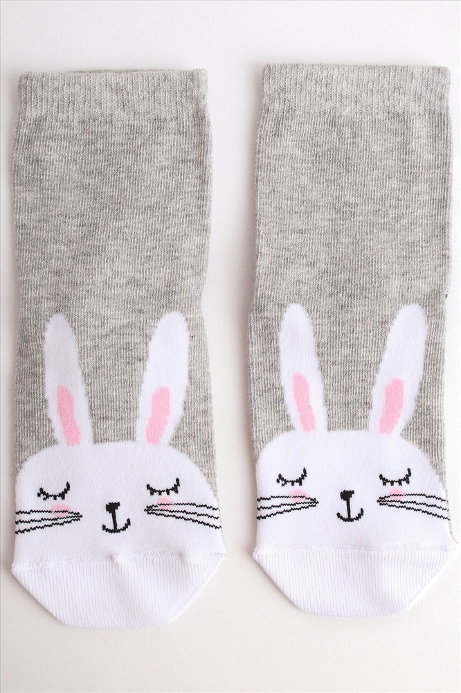 Носки для детей бело-серые batik с рисунком в виде зайчиков. На всех стадиях производства данного изделия, специально разработанного для детей, были использованы материалы, краска, нити и аксессуары, безвредные для здоровья ребенка.