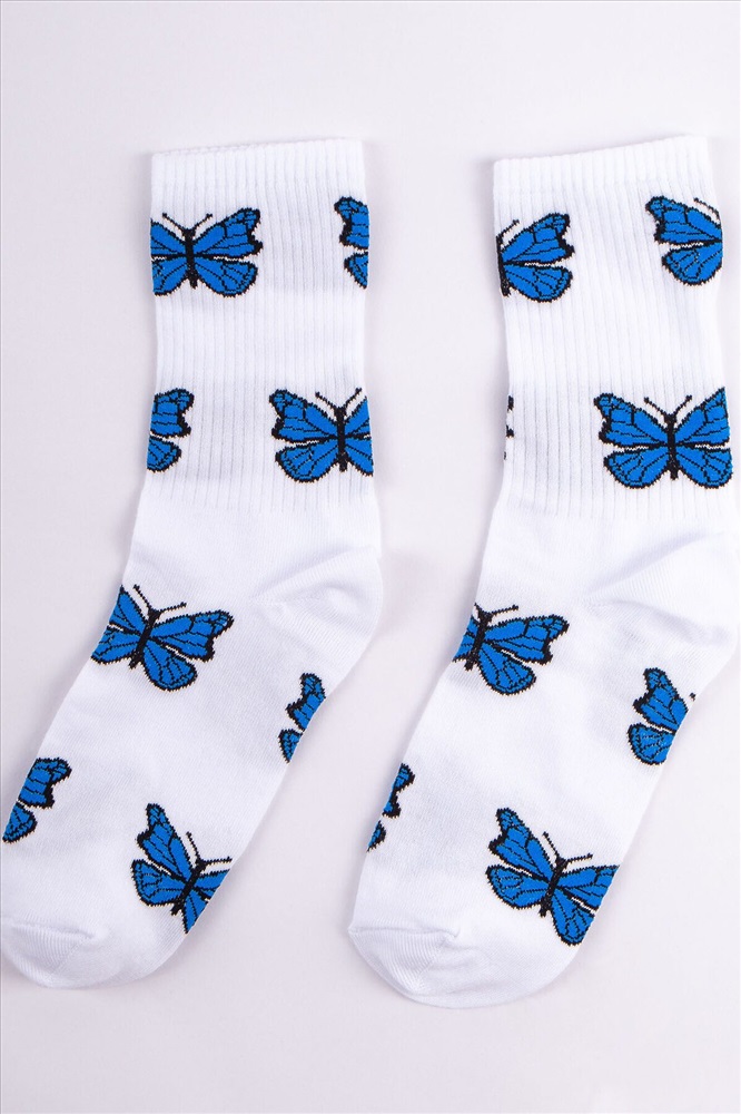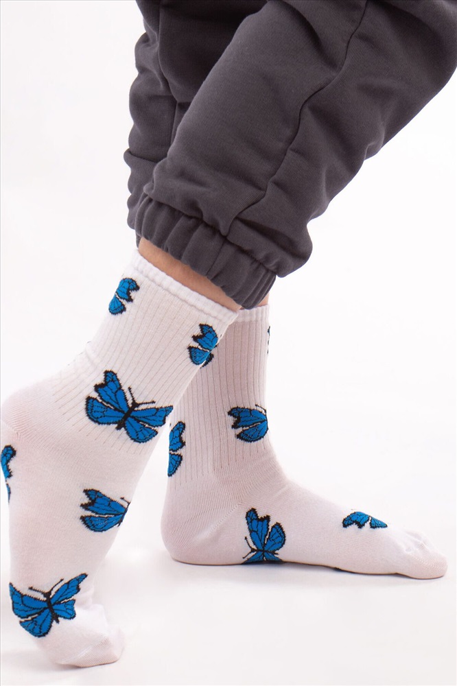 ID товара: 959631 Состав: Хлопок 80%, Полиамид 15%, Лайкра 5% Сезон: Демисезон Основная ткань: Хлопок Вид носков/гольф: Фантазийные Страна бренда: Россия Страна производства: Россия Носки для детей белые с рисунком в виде голубых бабочек. Носки высокие, в составе хлопок и полиамид с лайкрой. Внешний полиамидный слой носков предотвратит возникновение мозолей и натоптышей. Комментарии к товару