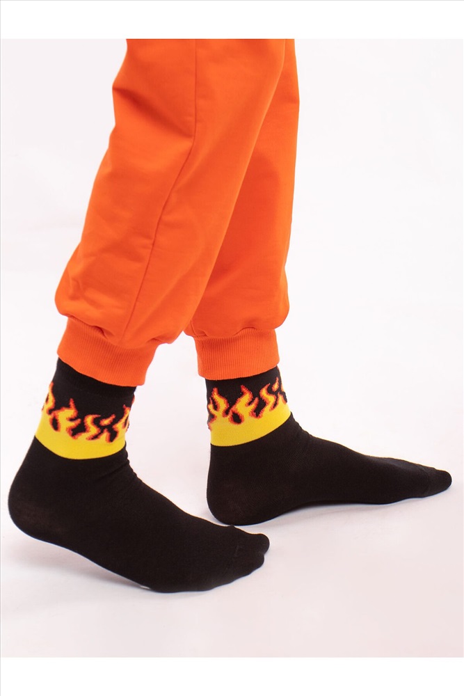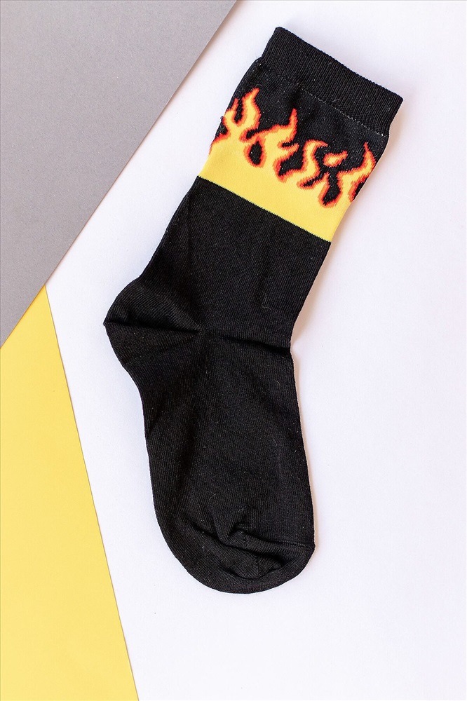 Носки детские черные из натурального хлопка классической длины. Модный рисунок в виде огня на паголенке. Эти спортивные носки подходят как для мальчиков, так и для девочек, подростков. Продаются упаковками по 6 пар.